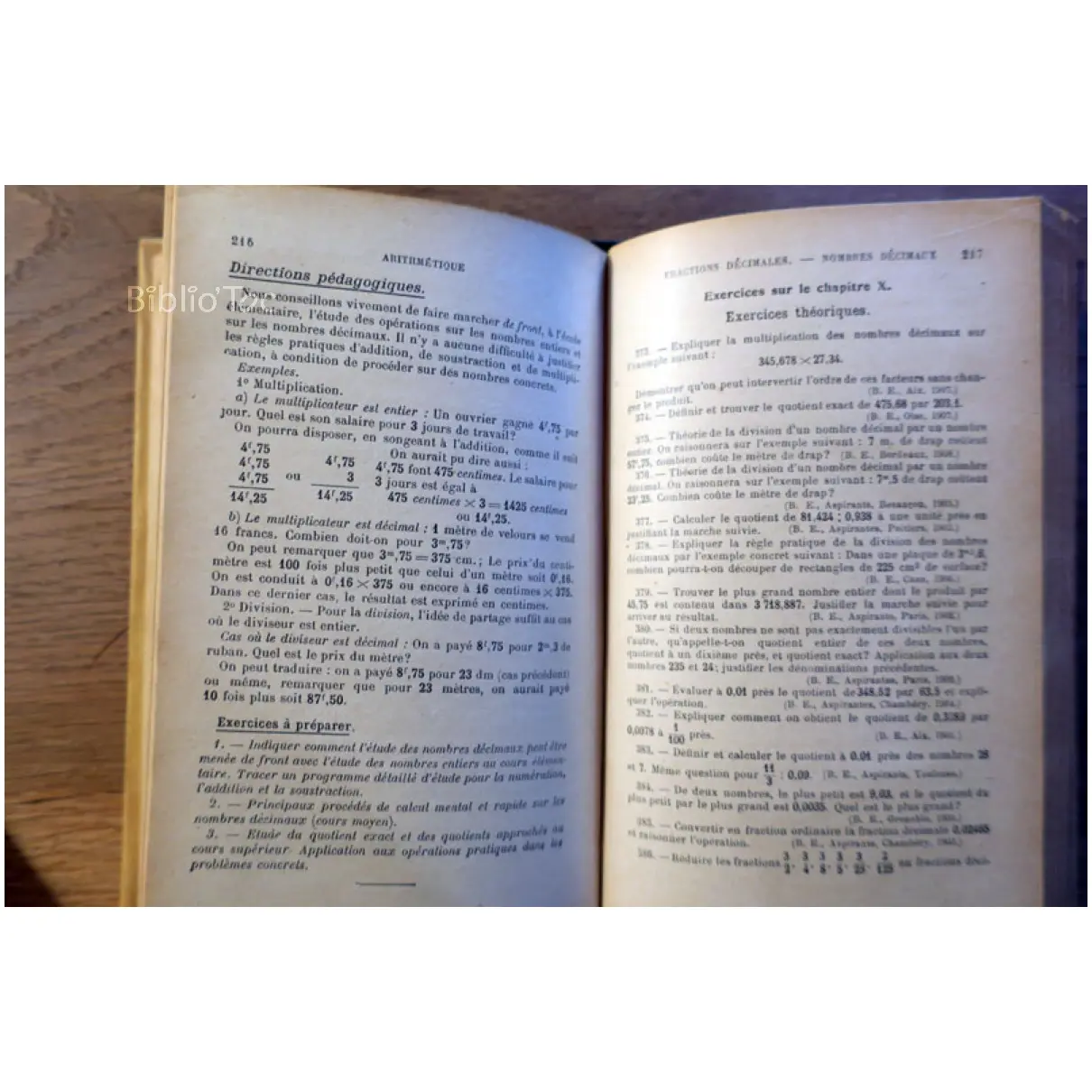 Arithmétique à l’usage des écoles normales primaires et des candidats au Brevet Supérieur – Détails: Couverture frottée Dos abîmé Bon état intérieur malgré quelques taches jaunes Auteur(s): Maurice Royer Arithmétique