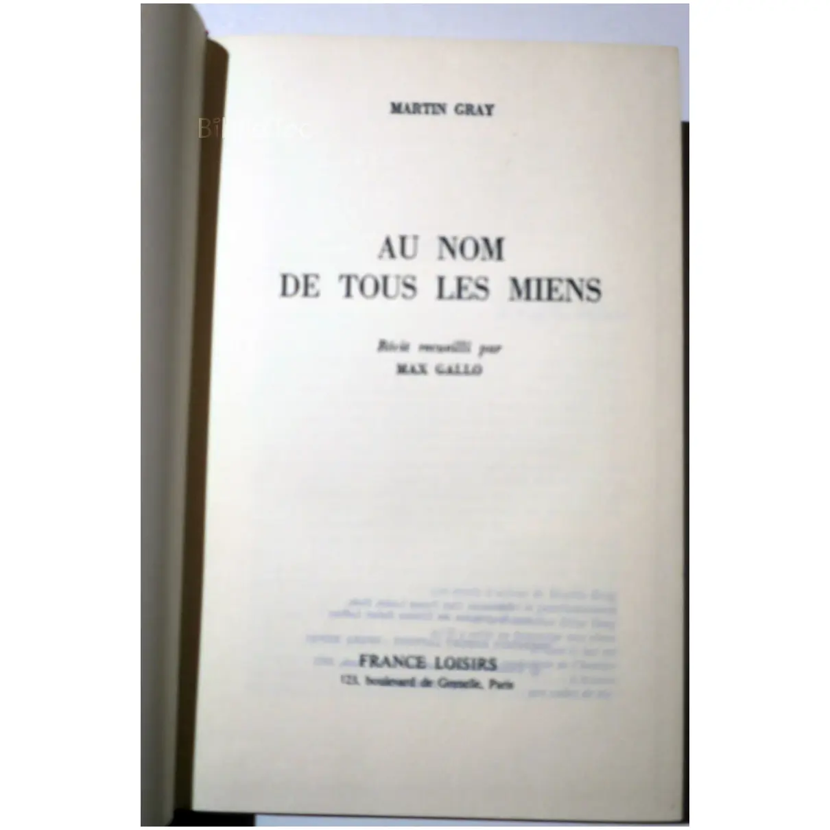 Au nom de tous les miens…Gray France Loisirs 1983