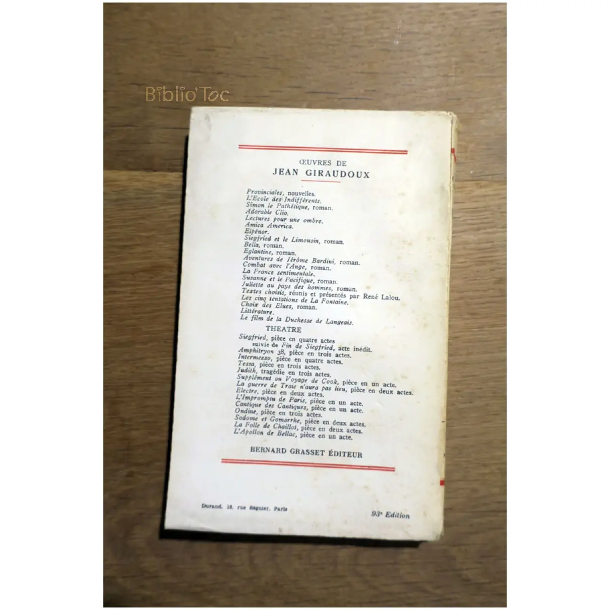 Livre – État: État satisfaisant – Auteur: Giraudoux – Édité par: Grasset – Année d’édition: 1949