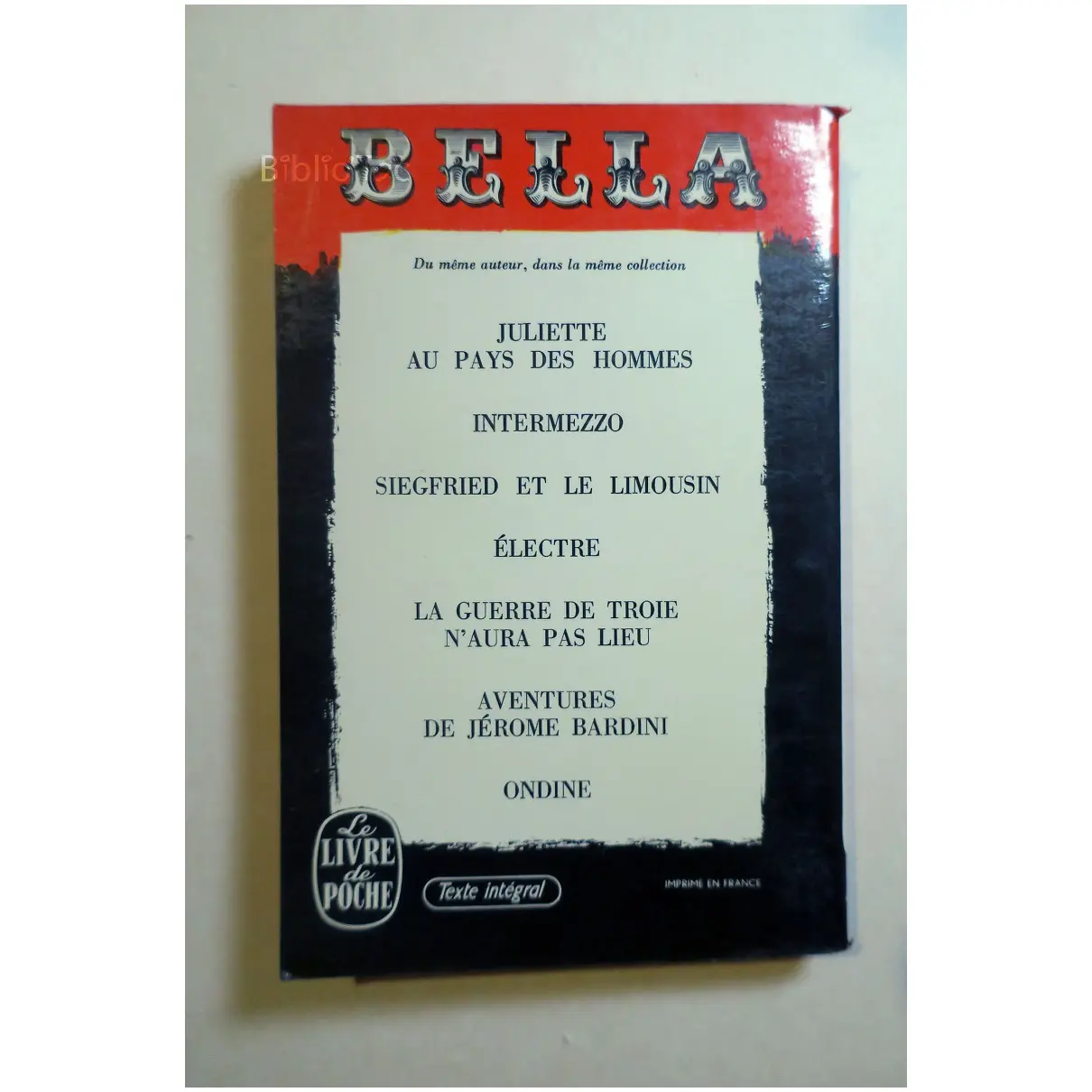 Bella…Giraudoux Le Livre de Poche 1967