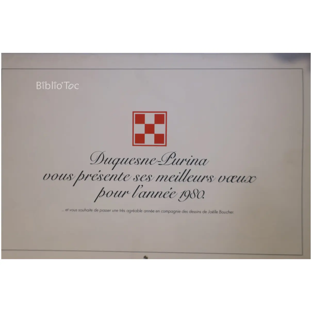 Calendrier Duquesne-Purina 1980 illustré par Joëlle Boucher – État: Couverture un peu salie Coins frottés Très bon état intérieur