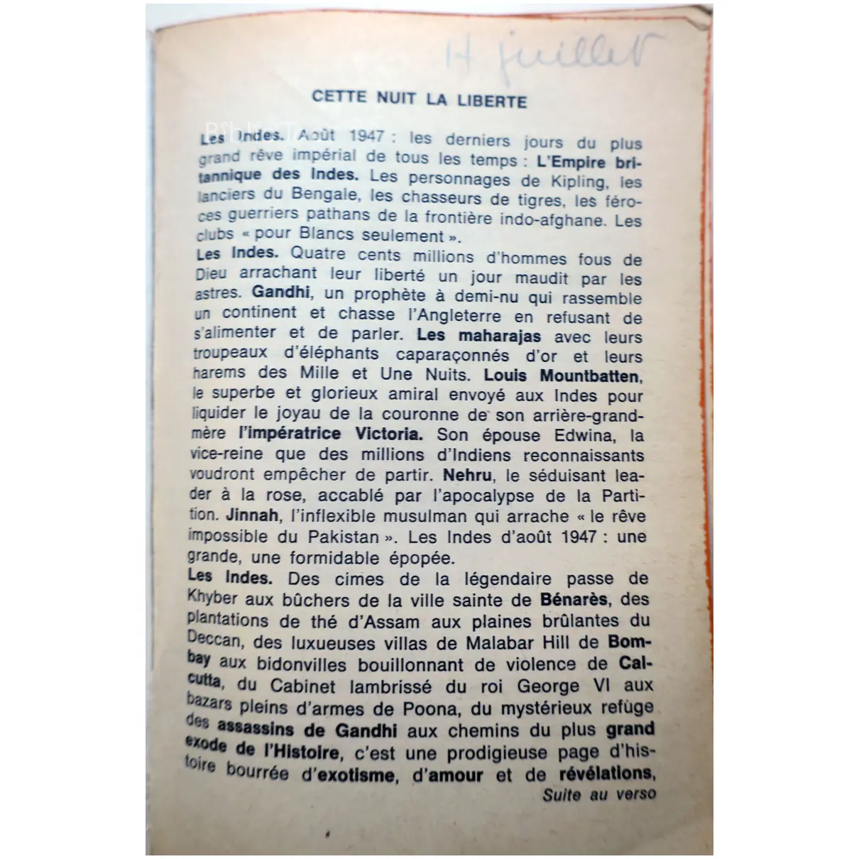 Cette nuit la liberté…Lapierre Le Livre de Poche 1975