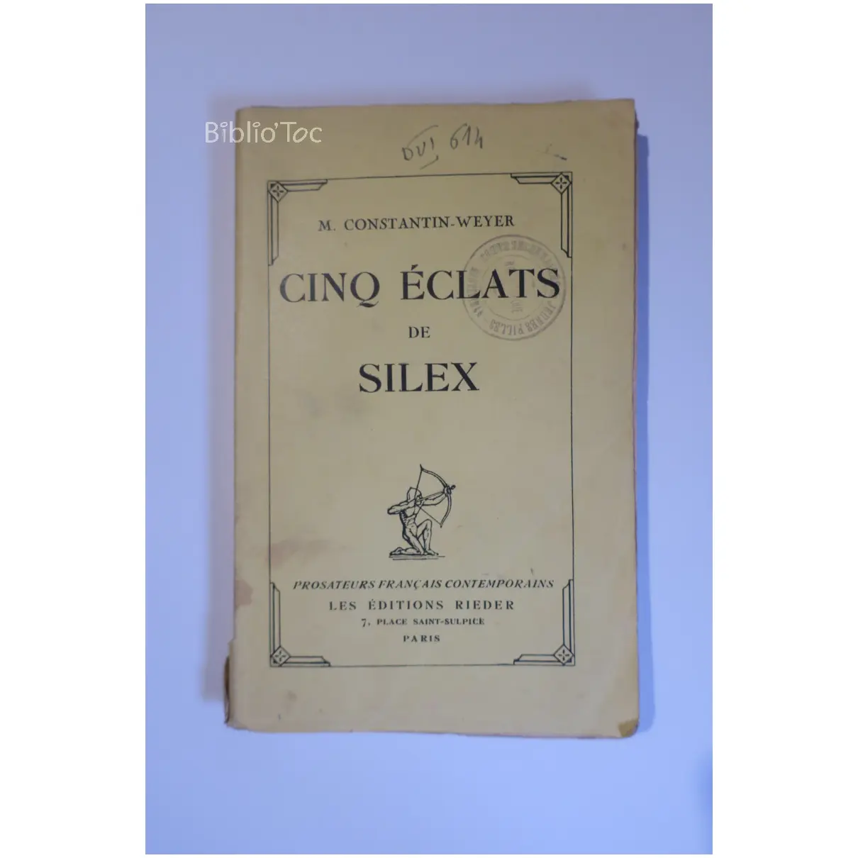 Cinq éclats de Silex – Détails: Couverture un peu déchirée Intérieur jauni mais correct Marques de bibliothèque Auteur(s): Maurice Constantin-Weyer – Collection: Prosateurs français contemporains