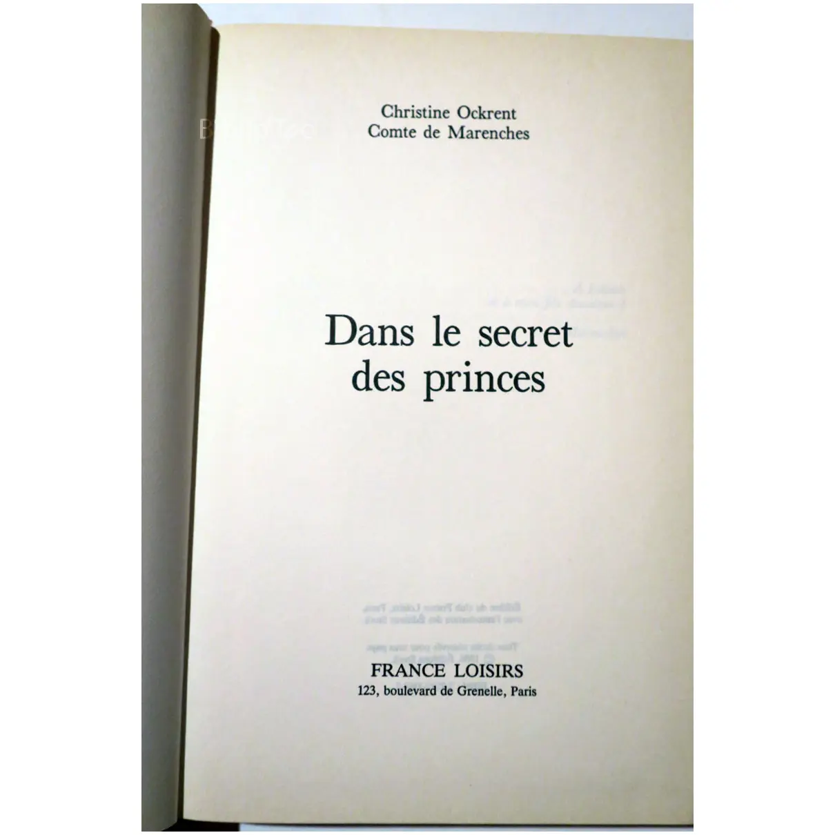 Dans le secret des princes…Ockrent France Loisirs 1987