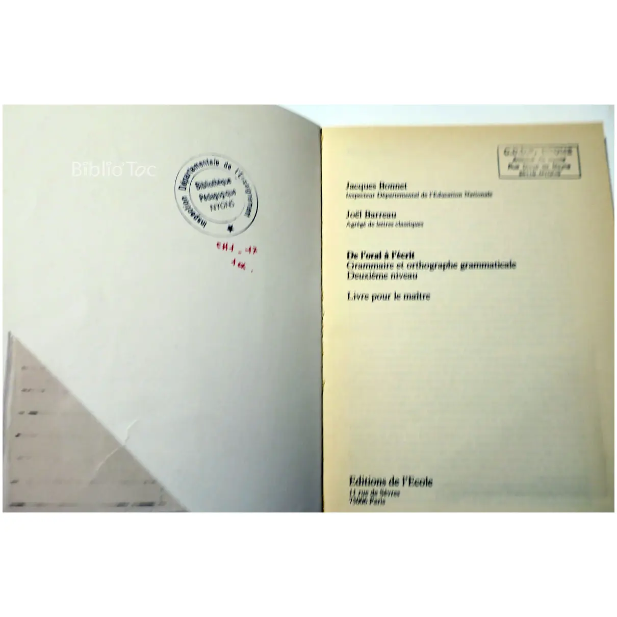 De l’oral à l’écrit Livre pour le maître…Bonnet EDL 1977