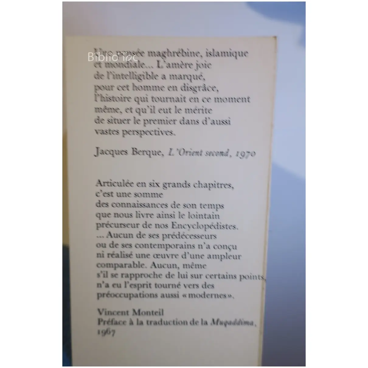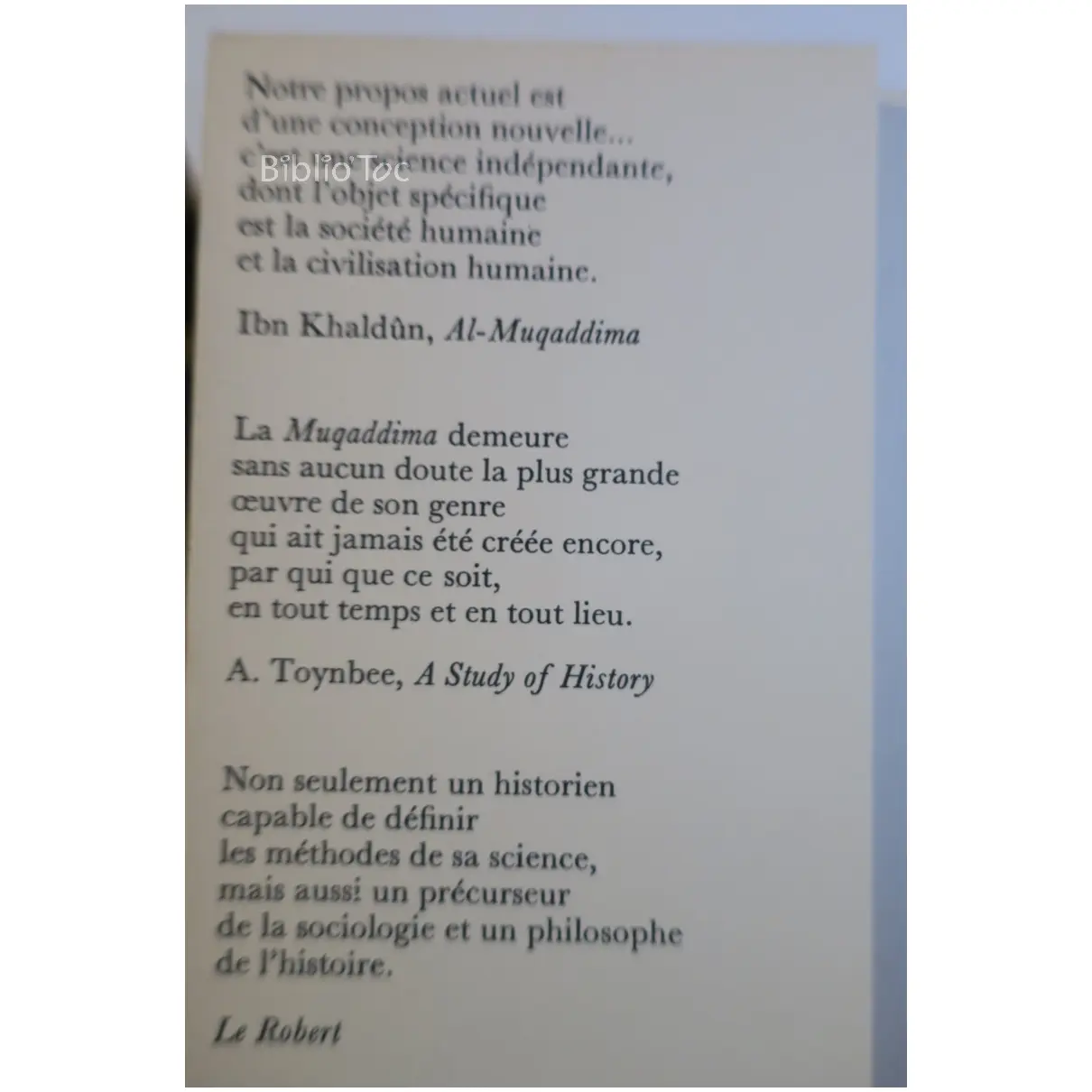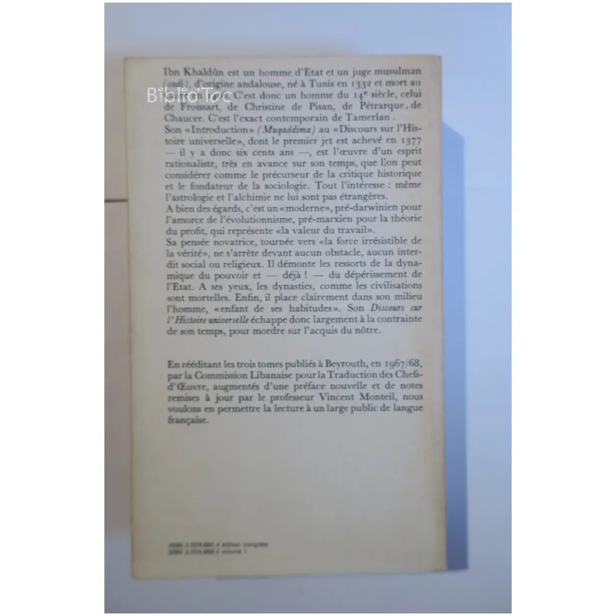 Discours sur l’Histoire Universelle T1…Khaldun Sindbad 1978