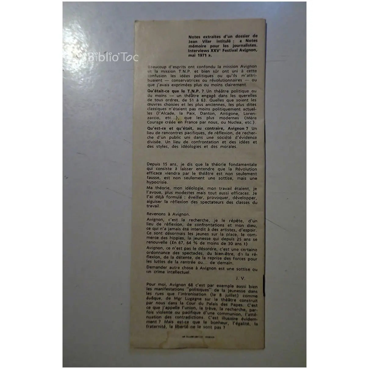Divers documents concernant le XXVe festival d’Avignon – État: