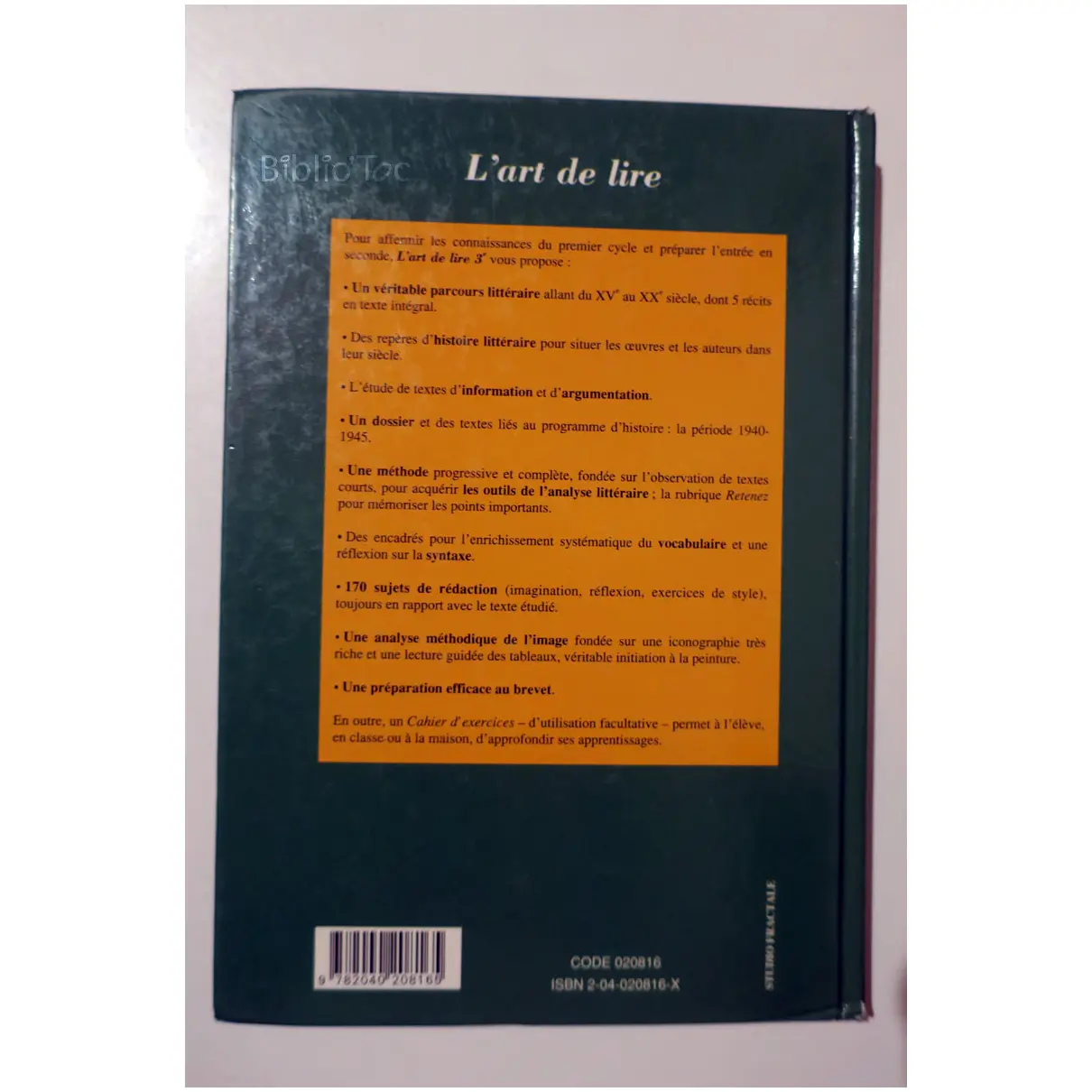 Français 3° L’art de lire – Détails: Coins à peine frottés Très bon état intérieur Marque de bibliothèque Auteur(s): Colmez