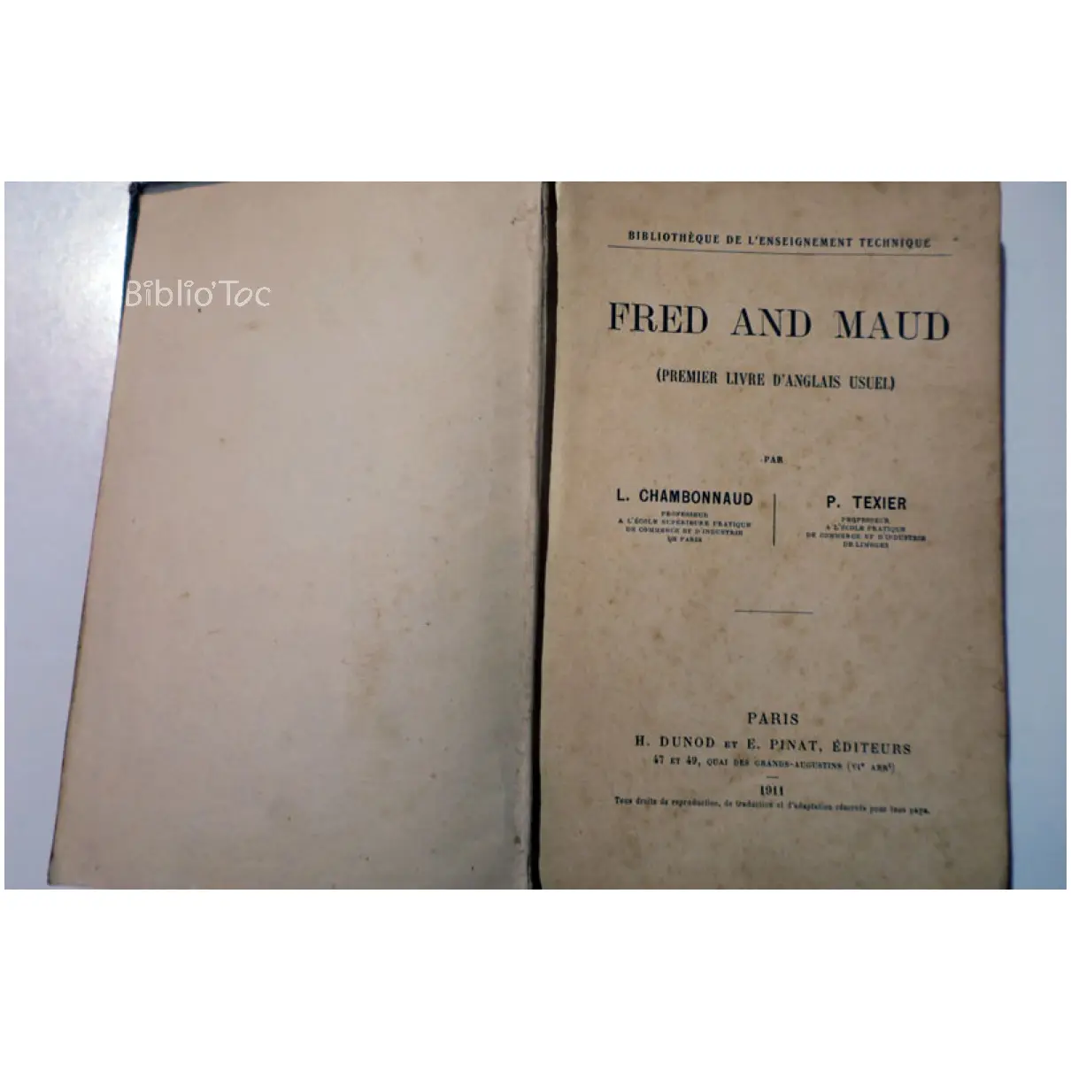 Fred and Maud – Détails: Couverture passée et tachée Coins abîmés Dos très usé Tranche tachée Intérieur jauni Taches jaunes Quelques annotations Deux feuilles se détachent Auteur(s): Chambonnaud Texier Anglais