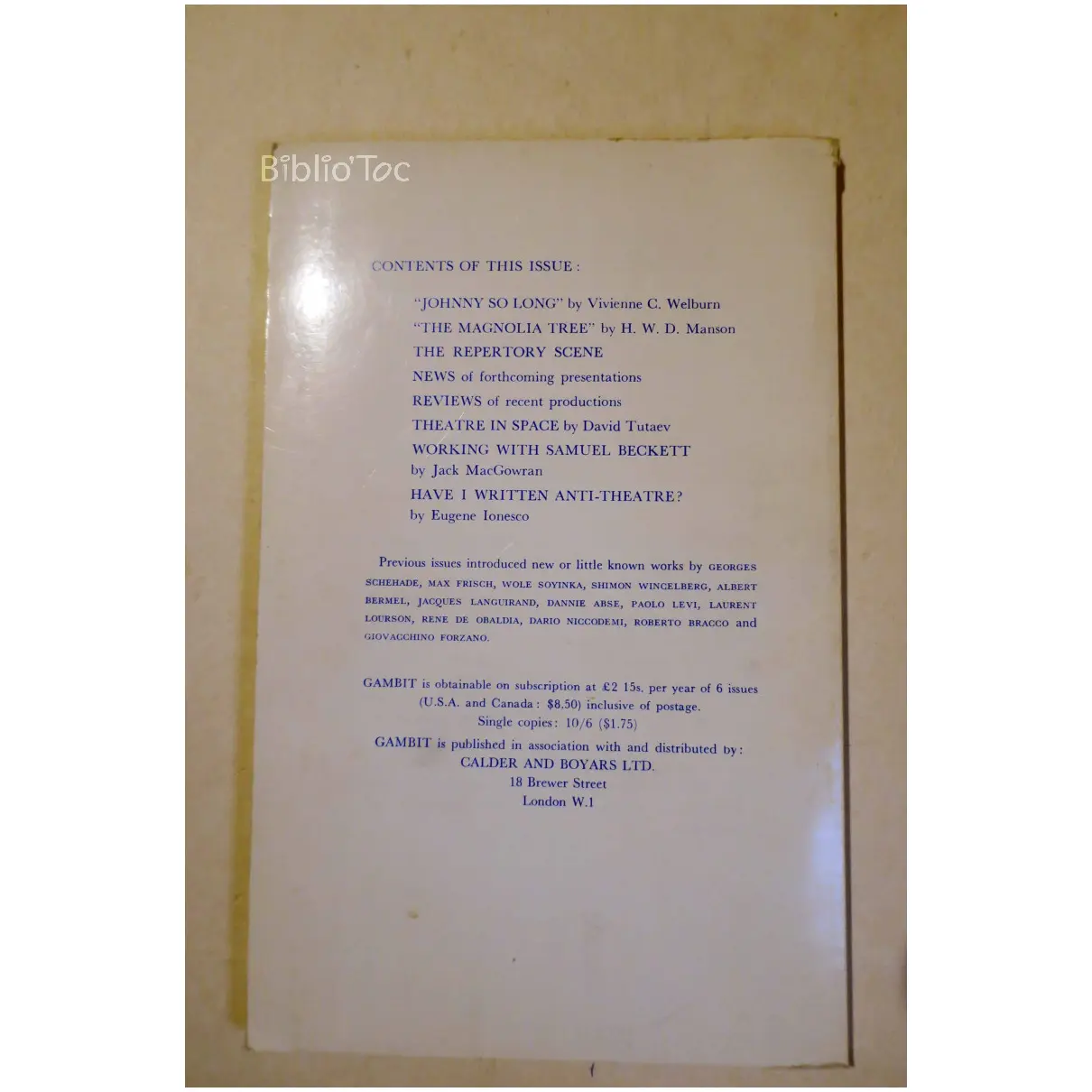 Gambit an international drama number 8 – Détails: Couverture salie Intérieur correct Légère odeur de renfermé Remarques: Année de publication estimée