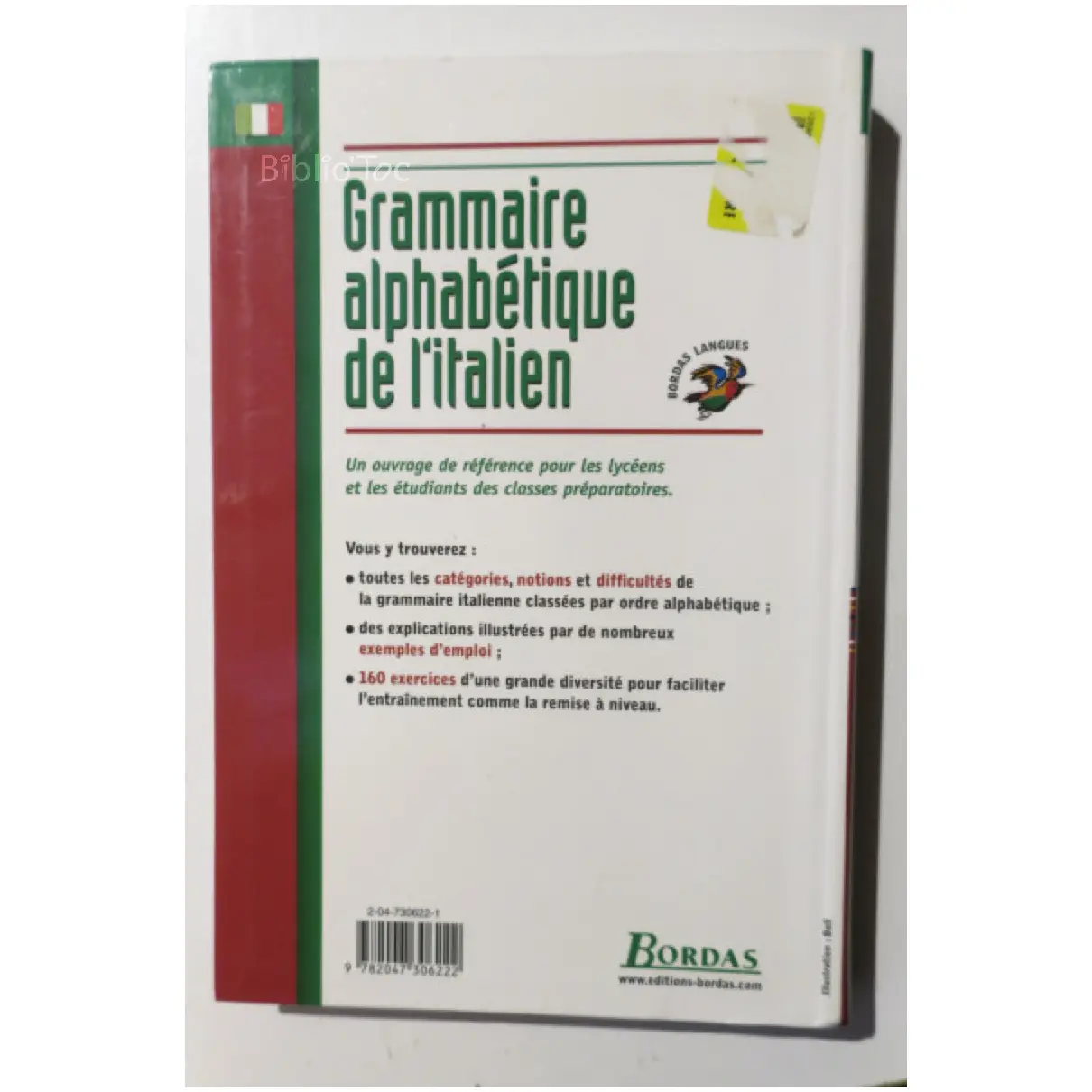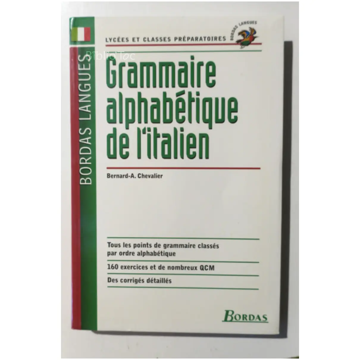 Grammaire alphabétique de l’Italien – Détails: Coins à peine frottés Très bon état Intérieur Auteur(s): Bernard Chevalier – Mots-clé: Italien Italien