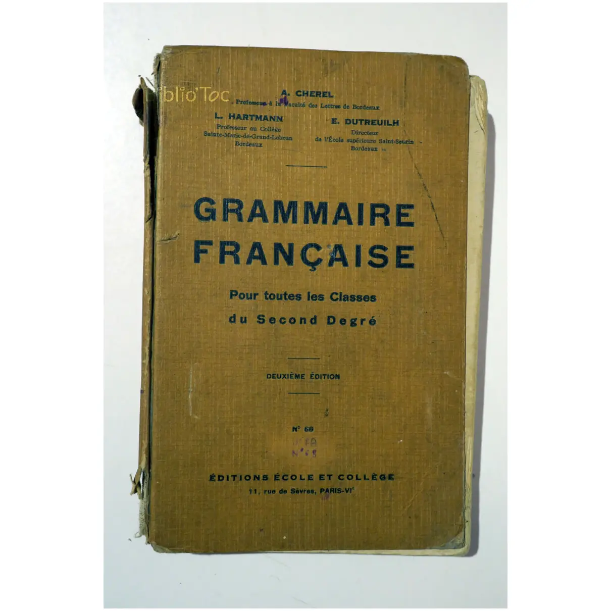Grammaire Française …Hartmann Éditions école et collège 1940 État:★★☆☆☆