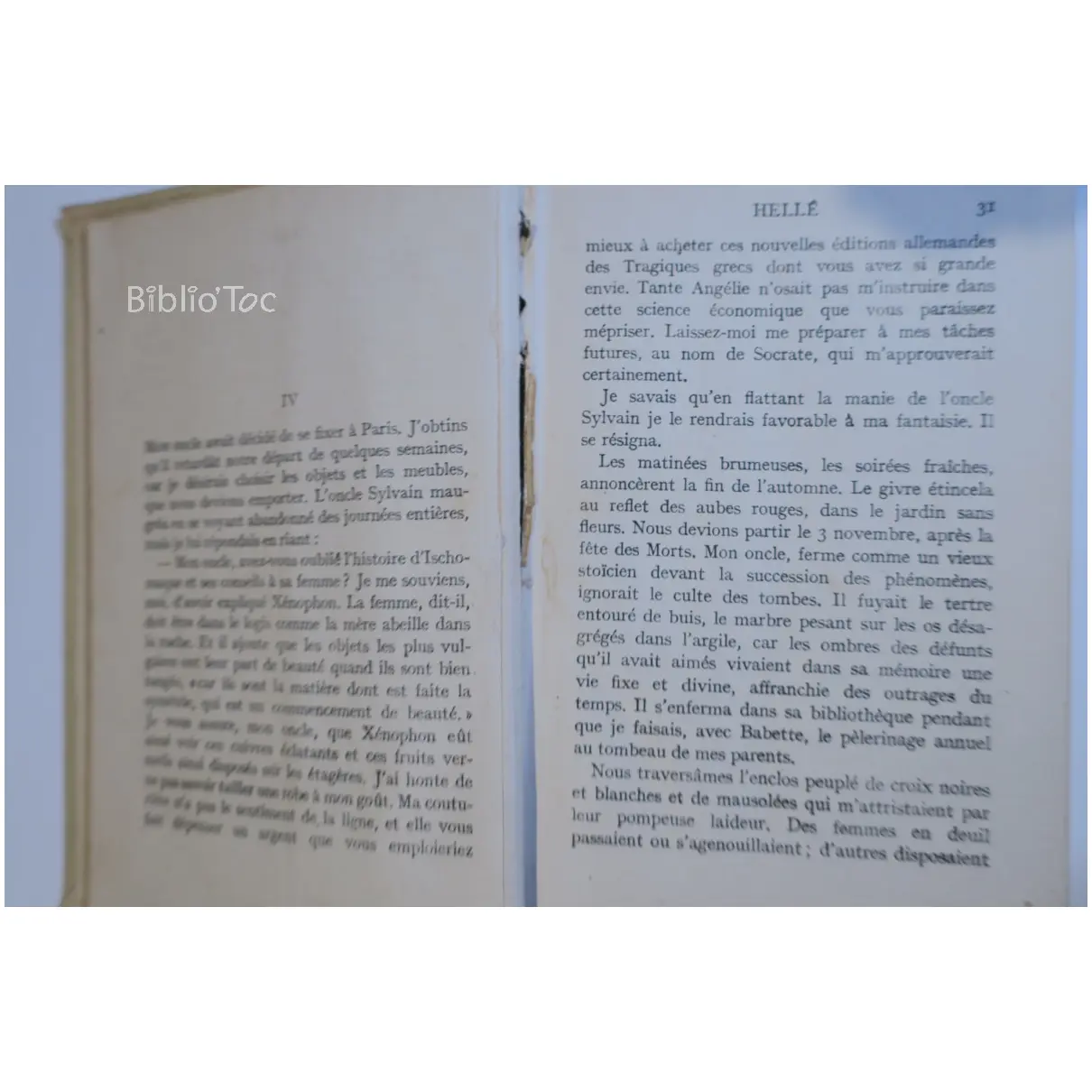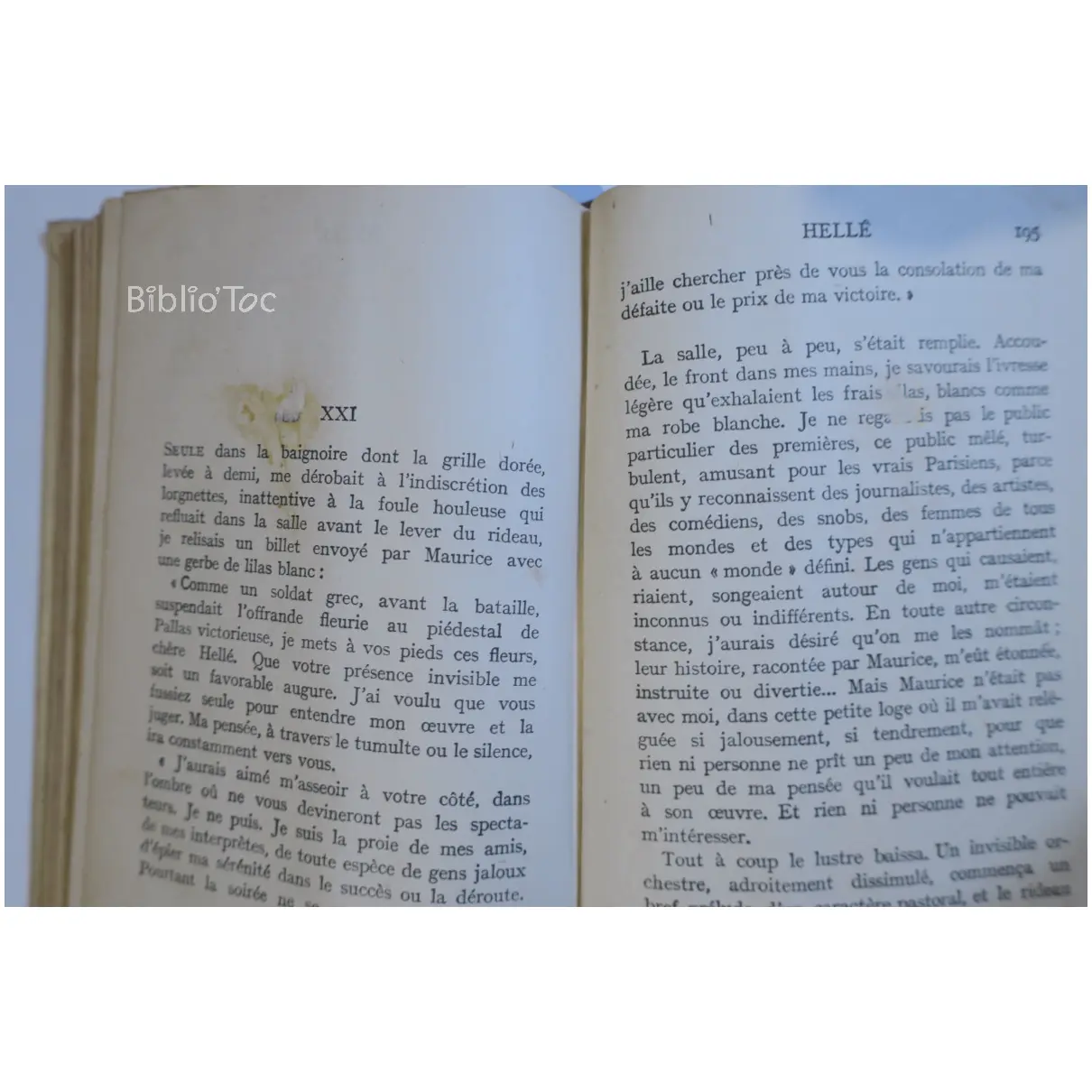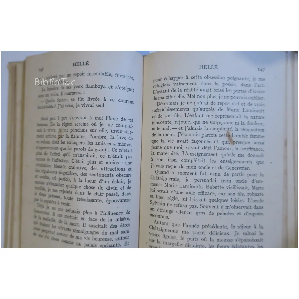 Hellé – Détails: Couverture usée et salie Coins et bords usés Reliure fragile Intérieur jauni Présence de taches Marque du précédent propriétaire Auteur(s): Marcelle Tinayre – Remarques: Année de parution estimée