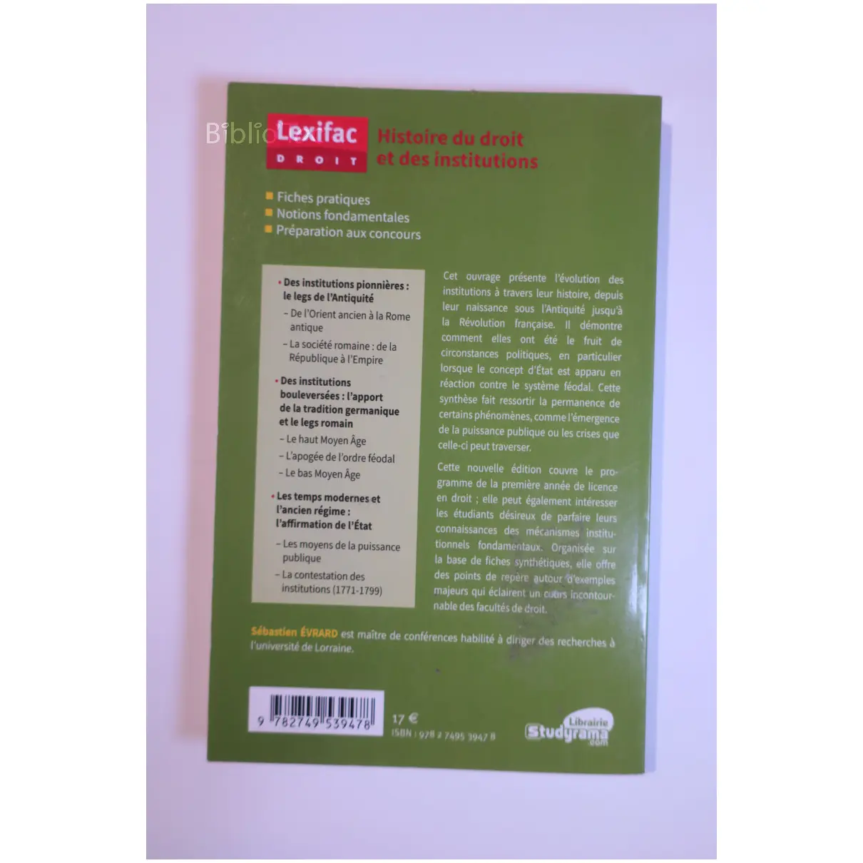 Histoire du droit et des institutions…Evrard Bréal 2020