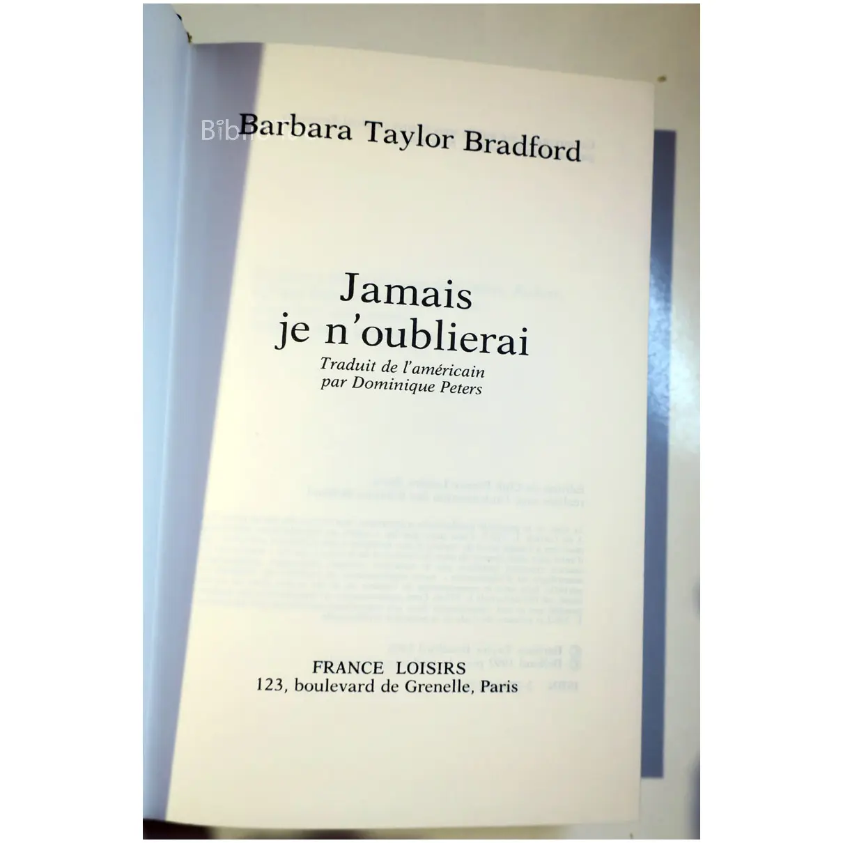 Jamais je n’oublierai…Taylor Bradford France Loisirs 1993