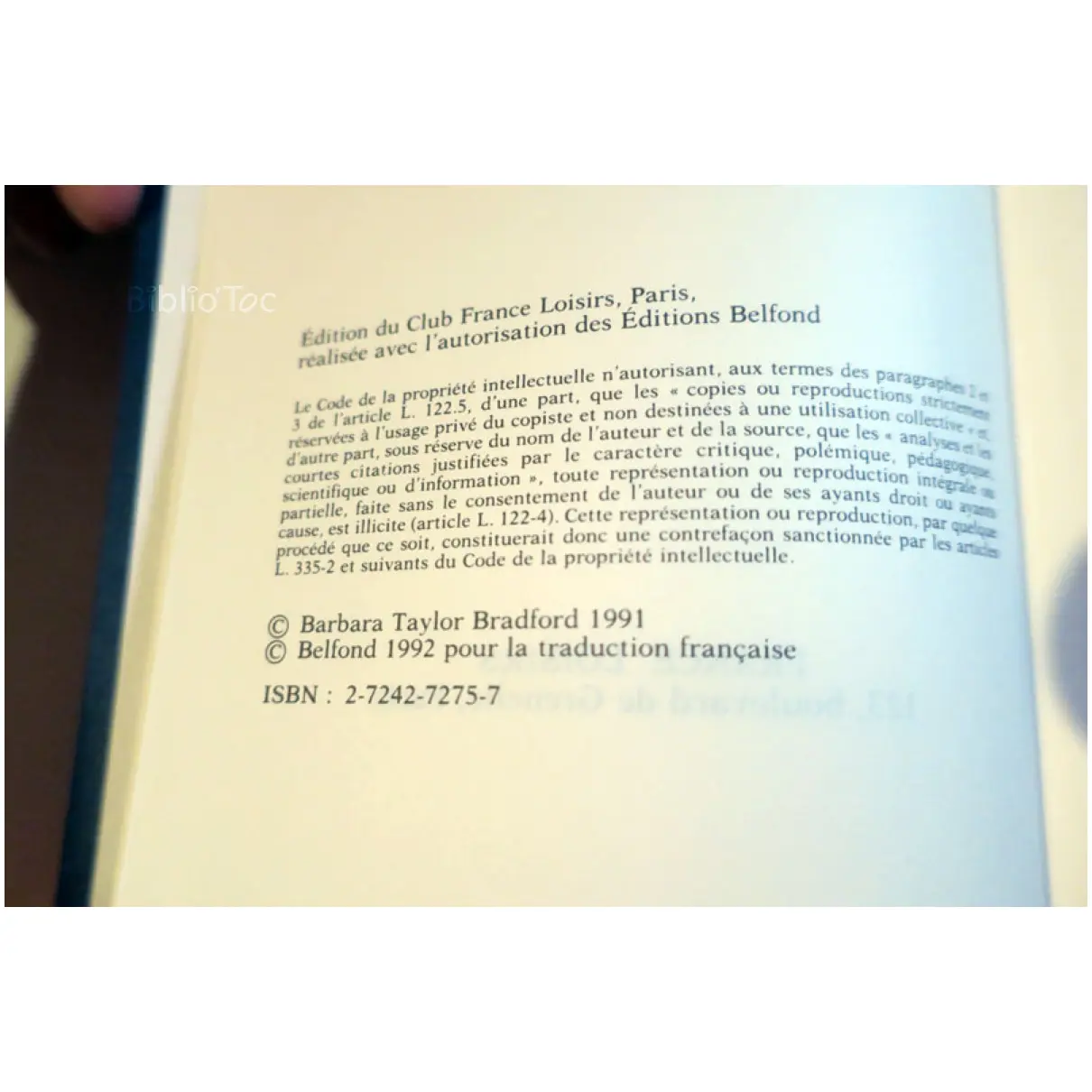 Livre – État: Très bon état – Auteur: Taylor Bradford – Édité par: France Loisirs – Année d’édition: 1993