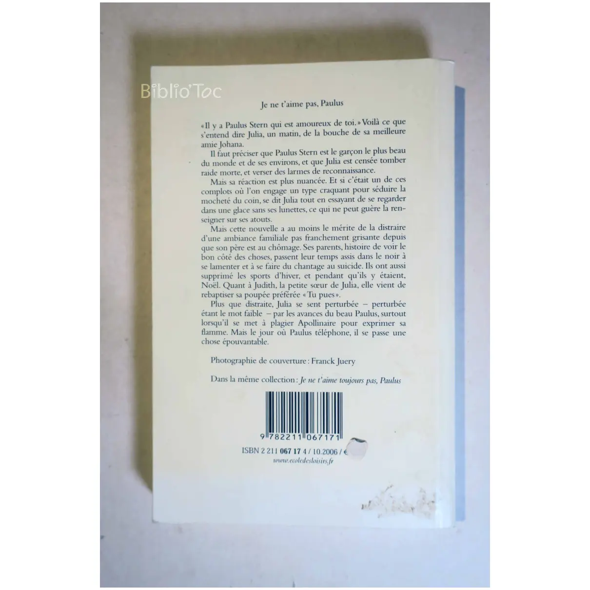 Je ne t’aime pas, Paulus – Détails: Coins à peine frottés Salissures sur la tranche Bon état intérieur Auteur(s): Agnès Desarthe