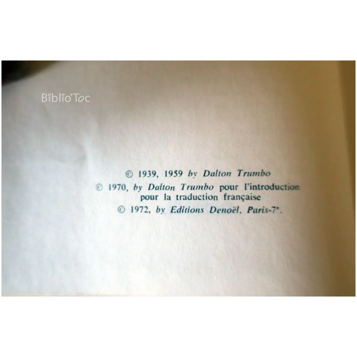 Livre – État: Bon état – Auteur: Trumbo – Édité par: Le grand Livre du mois – Année d’édition: 1972