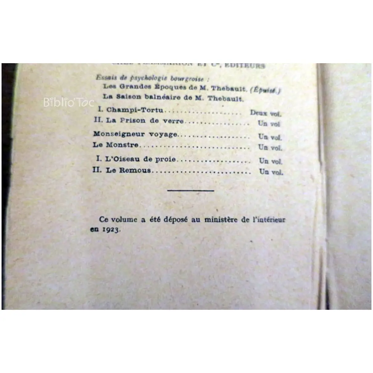 La Despélouquéro…Chérau Plon 1923