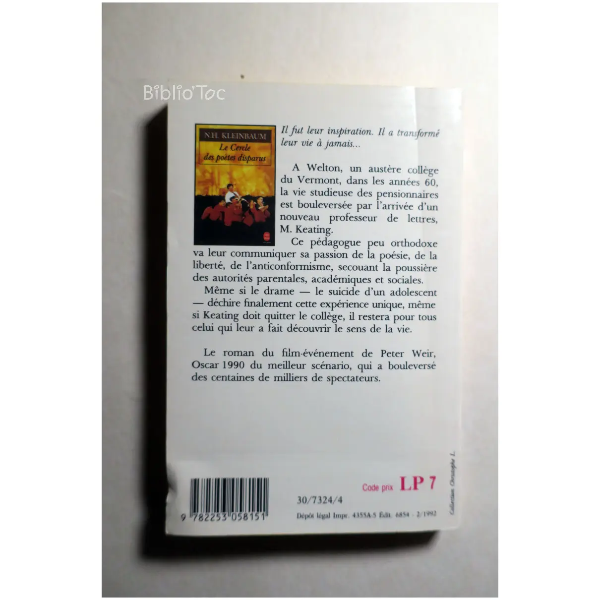 Le Cercle des poètes disparus…Kleinbaum Le Livre de Poche 1991