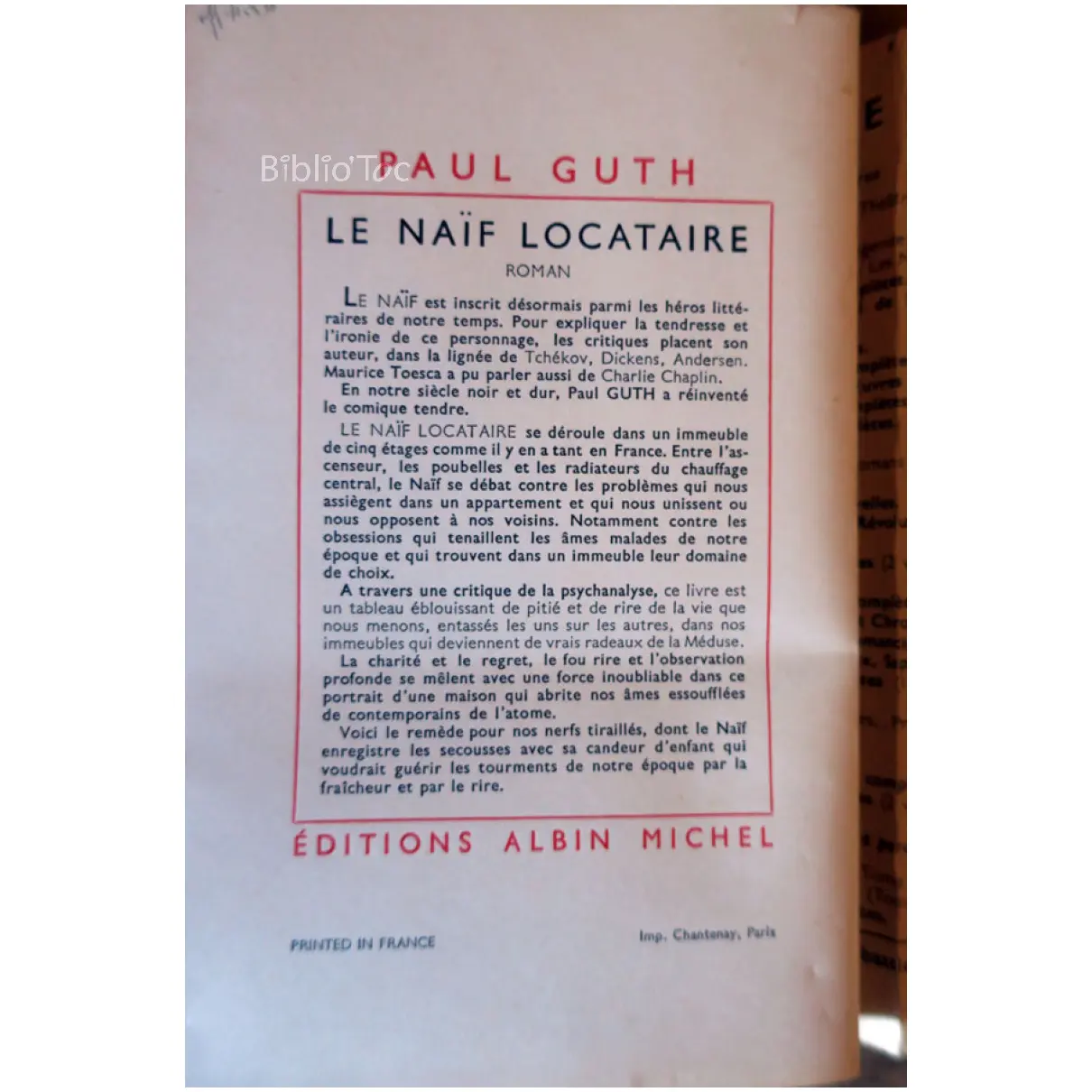 Le naïf locataire…Guth Albin Michel 1956