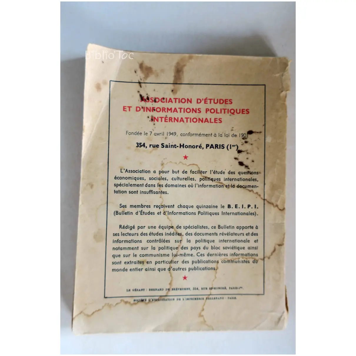 Livre – État: Mauvais état – Édité par: Association d’études et d’informations politiques – Année d’édition: 1951