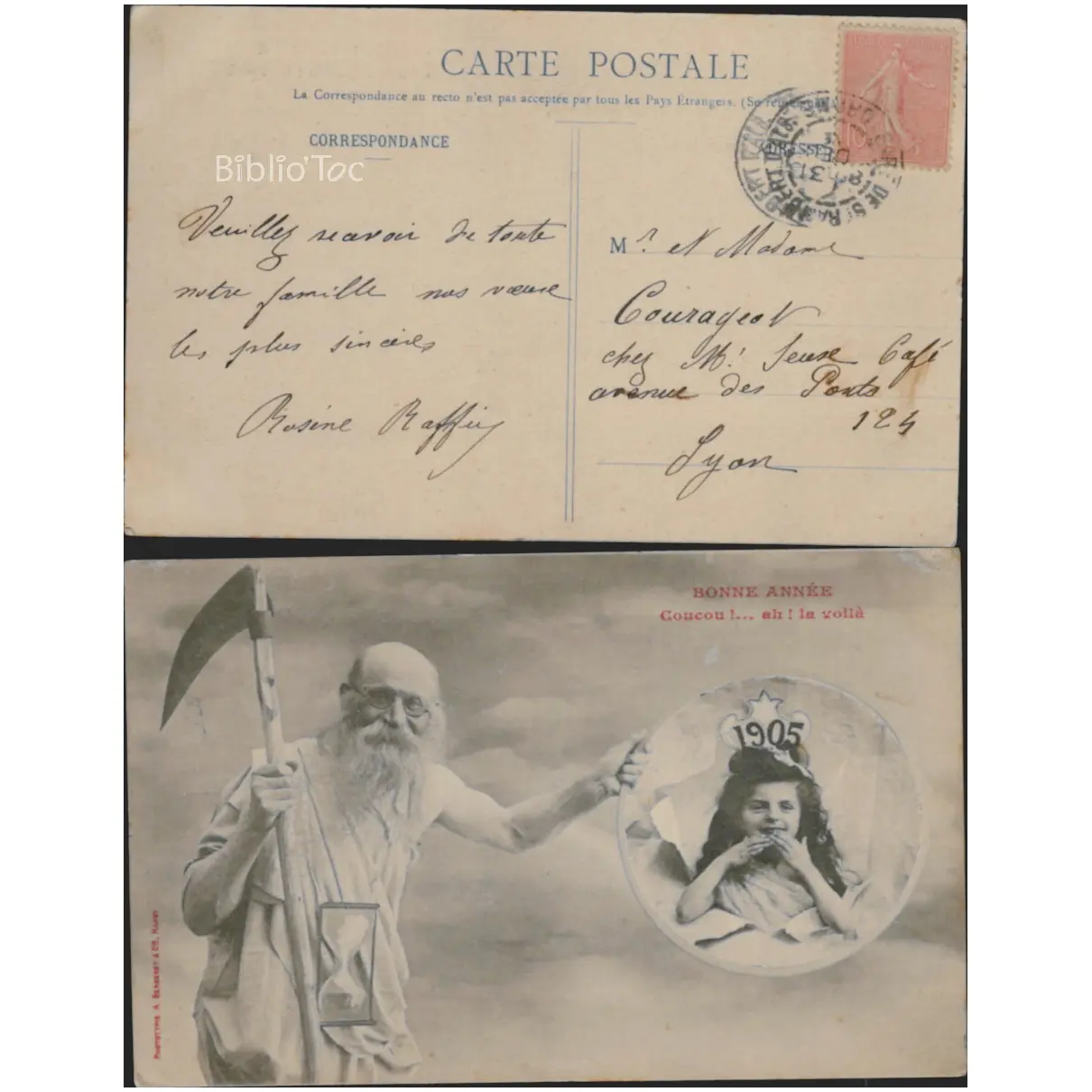 Le temps faux et sablier Enfant en médaillon Bonne année Coucou ! … ah ! La voilà – État: Coins et bords usés