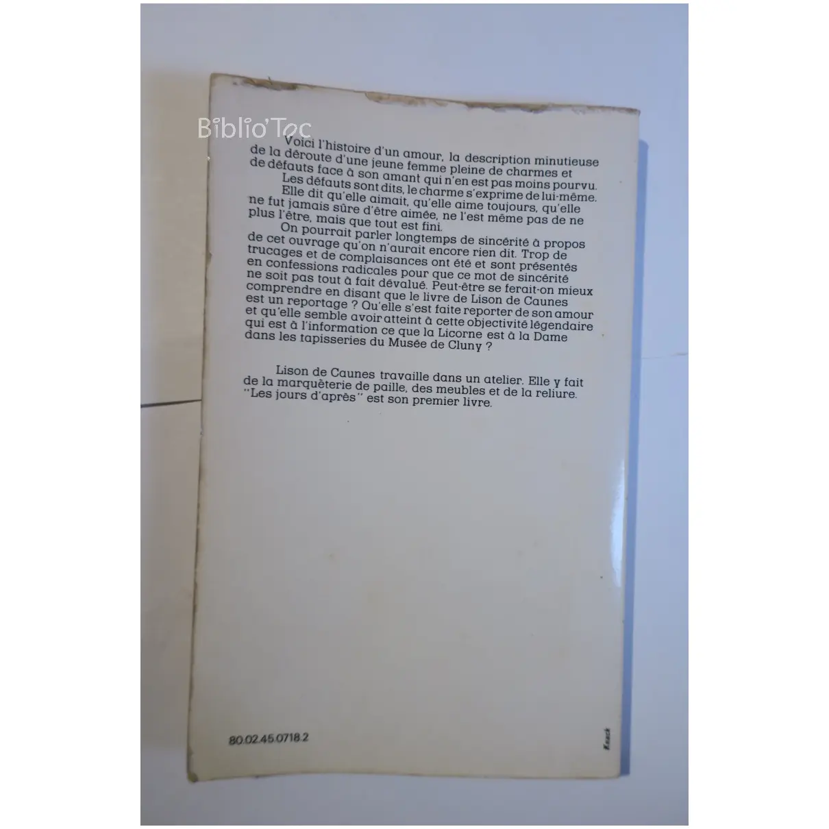 Les jours d’après – Détails: Coins et bords usés Salissures sur la tranche Intérieur correct Légère odeur de renfermé Auteur(s): Lison de Caunes