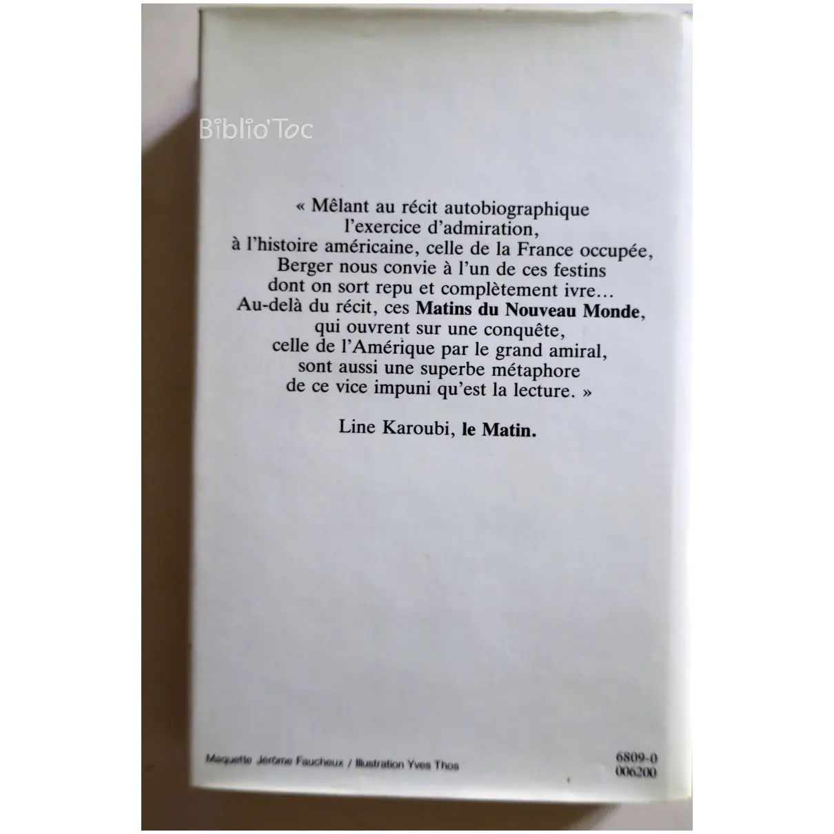 Les Matins du Nouveau Monde…Berger Grasset 1987