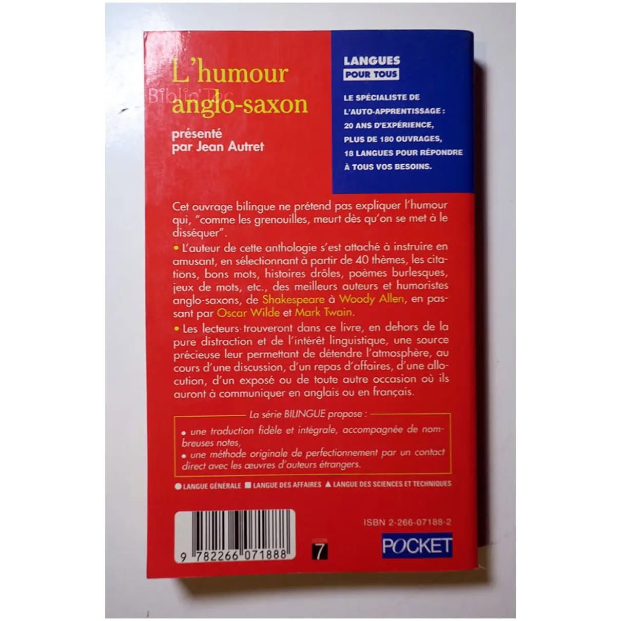 L’humour Anglo-saxon – Détails: Couverture un peu fripée Coins frottés Intérieur correct – Collection: Pocket Langues pour tous
