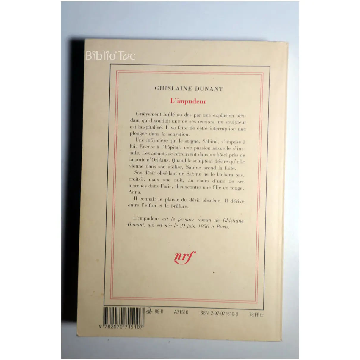L’Impudeur…Dunant Gallimard 1989