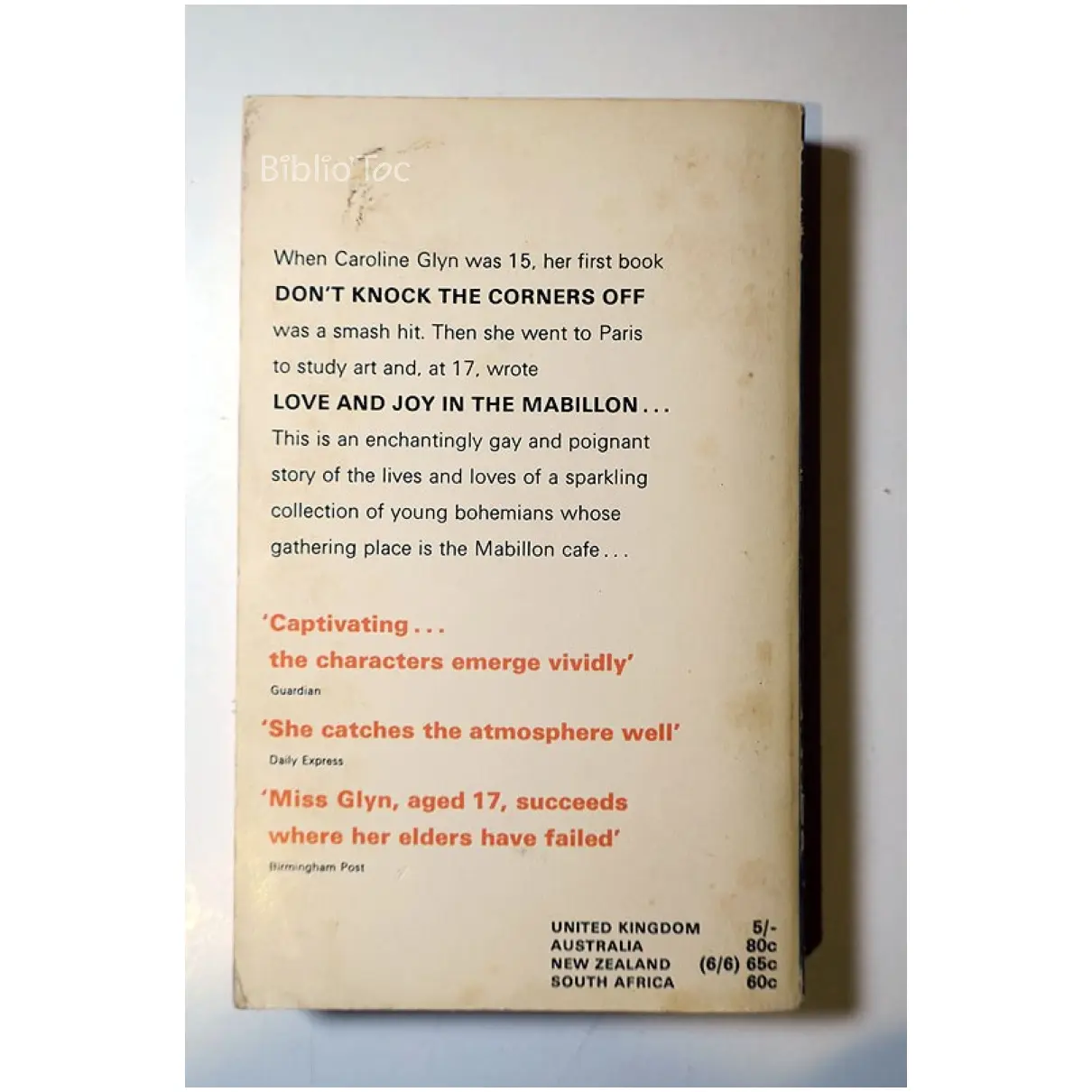 Love and Joy in the Mabillon – Détails: Couverture usée et tachée Dos déchiré Intérieur jauni Auteur(s): Caroline Glyn