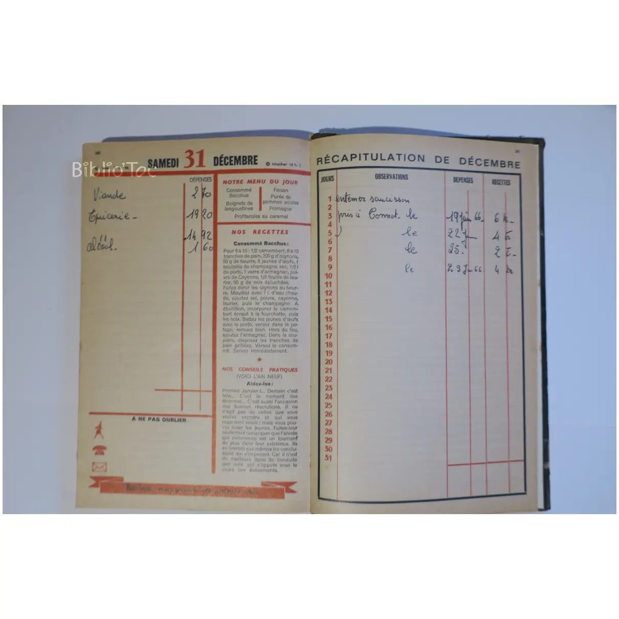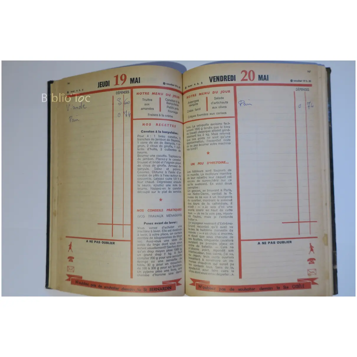 Modes et travaux Almanach – État: Couverture abîmée Dos déchiré A l’intérieur, des annotations de dépenses et vie quotidienne