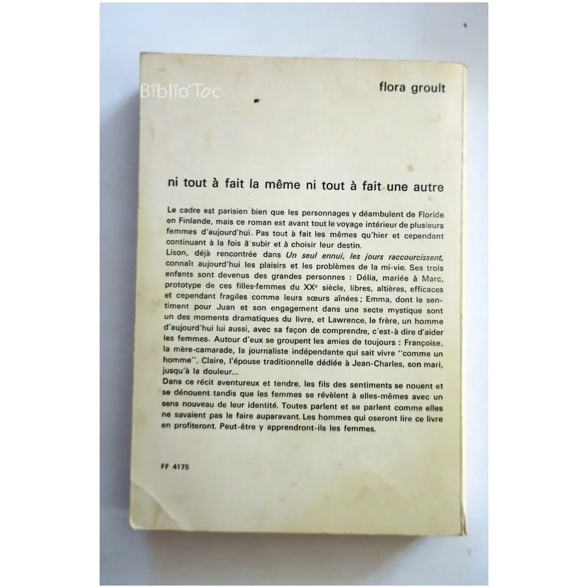 Ni tout à fait la même, ni tout à fait une autre – Détails: Coins usé Dos déchiré Intérieur correct Auteur(s): Flora Groult