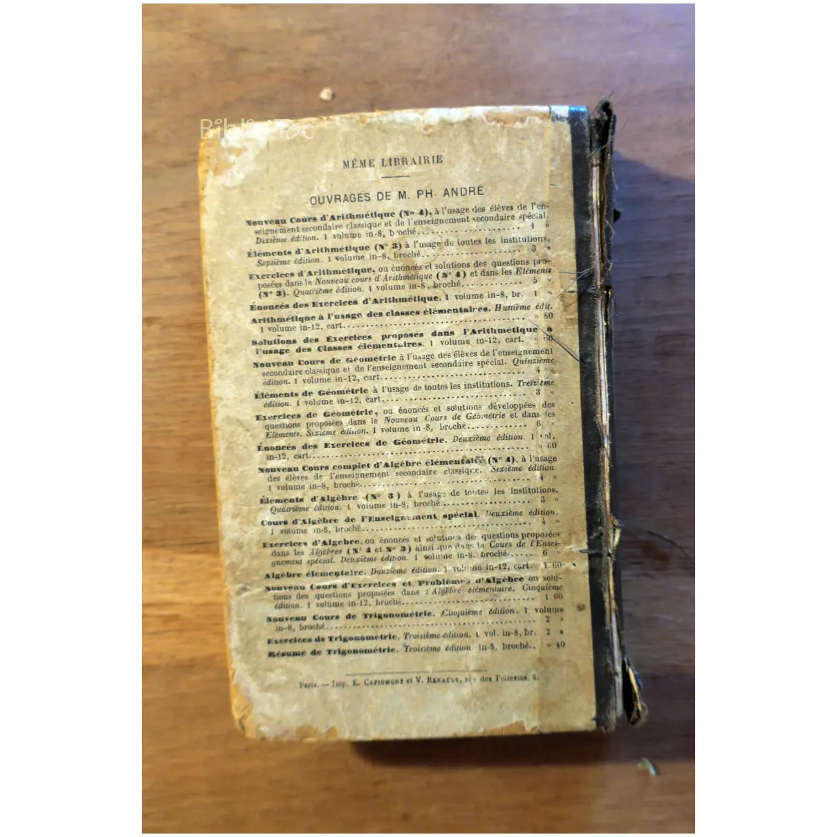 Nouveau cours de géométrie – Détails: Couverture abîmée et salie Dos déchiré Traces d’humidité et taches jaune à l’intérieur Auteur(s): André Géométrie