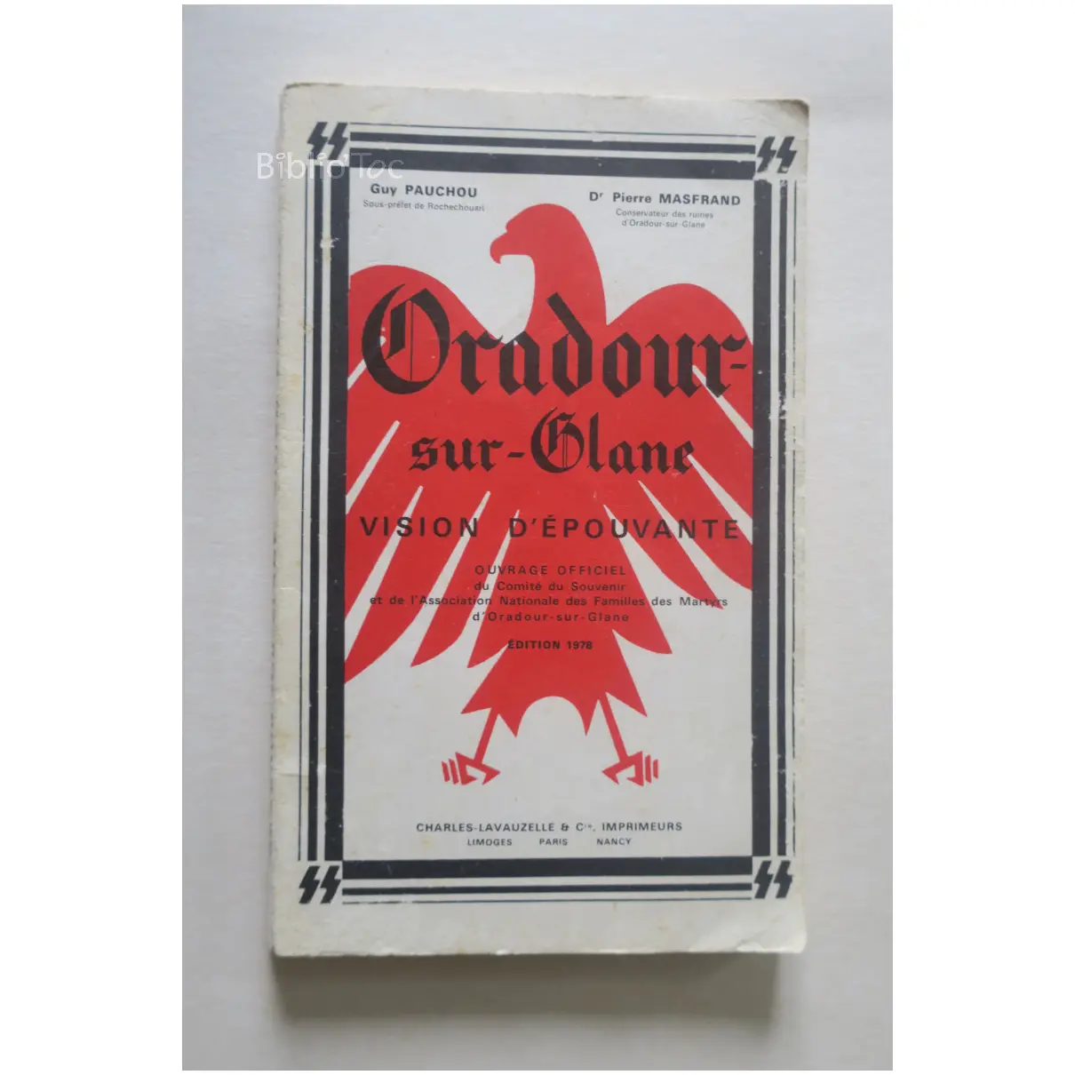 Oradour-sur-Glane Vision d’épouvante ouvrage officiel – Détails: Couverture usée Coins et bords frottés Intérieur jauni Présence de taches jaunes Certaines photos difficilement soutenables