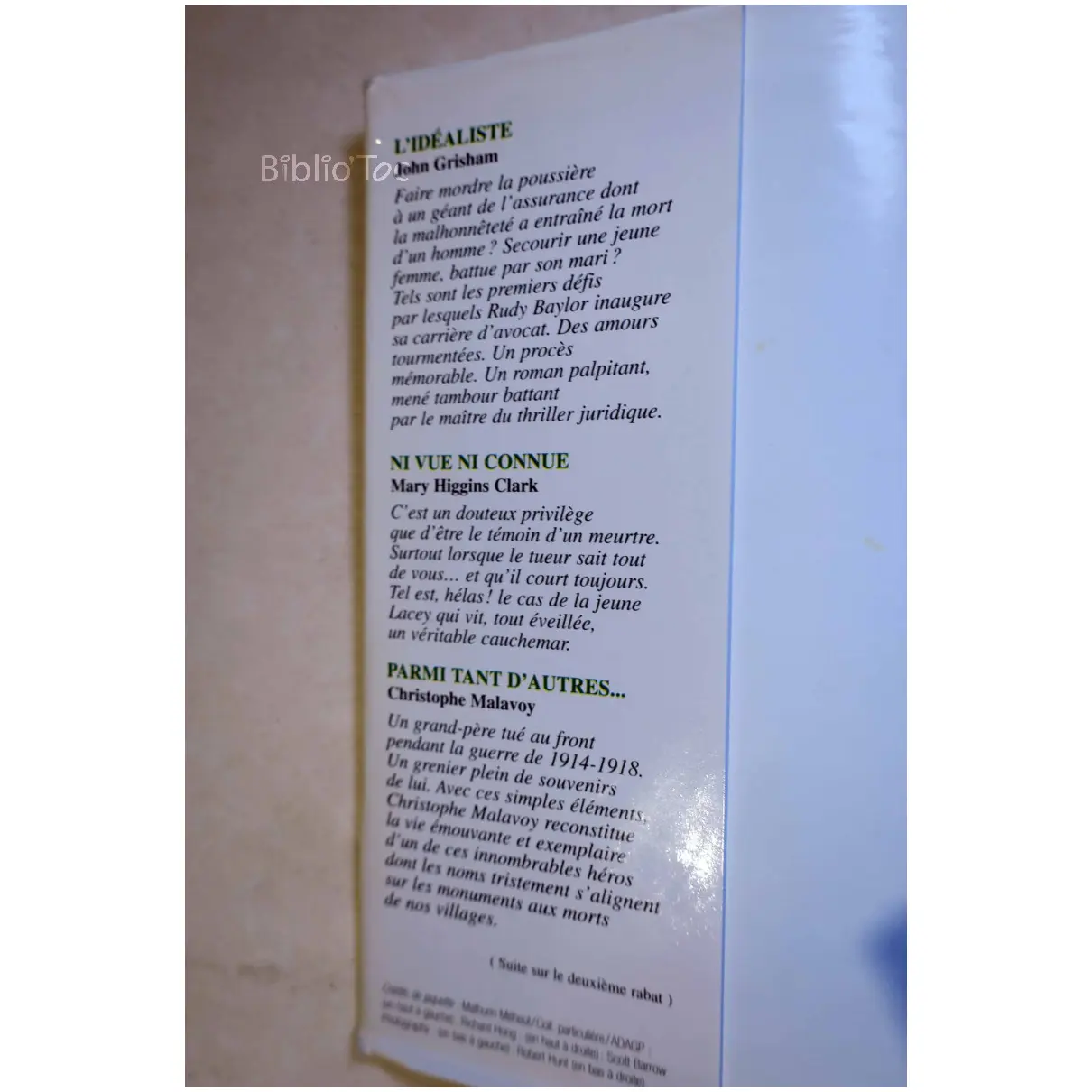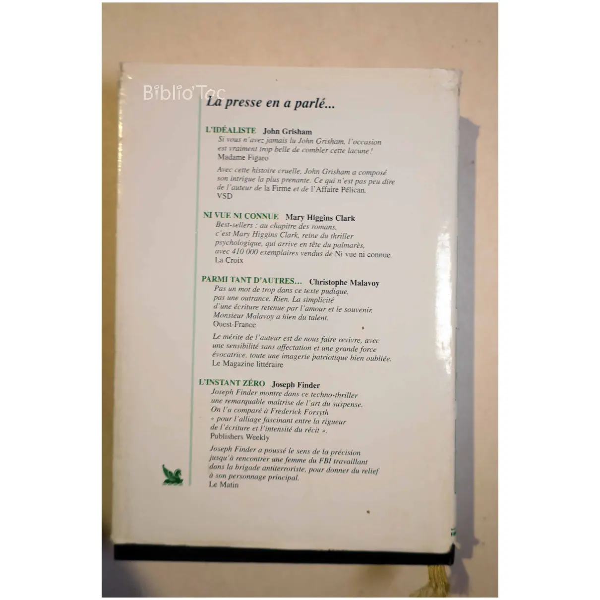 Parmi tant d’autres Ni vue ni connue L’Idéaliste L’instant Zéro – Détails: Jaquette usée Livre en bon état Auteur(s): Auteurs variés Malavoy Higgins Clark Grisham Finder