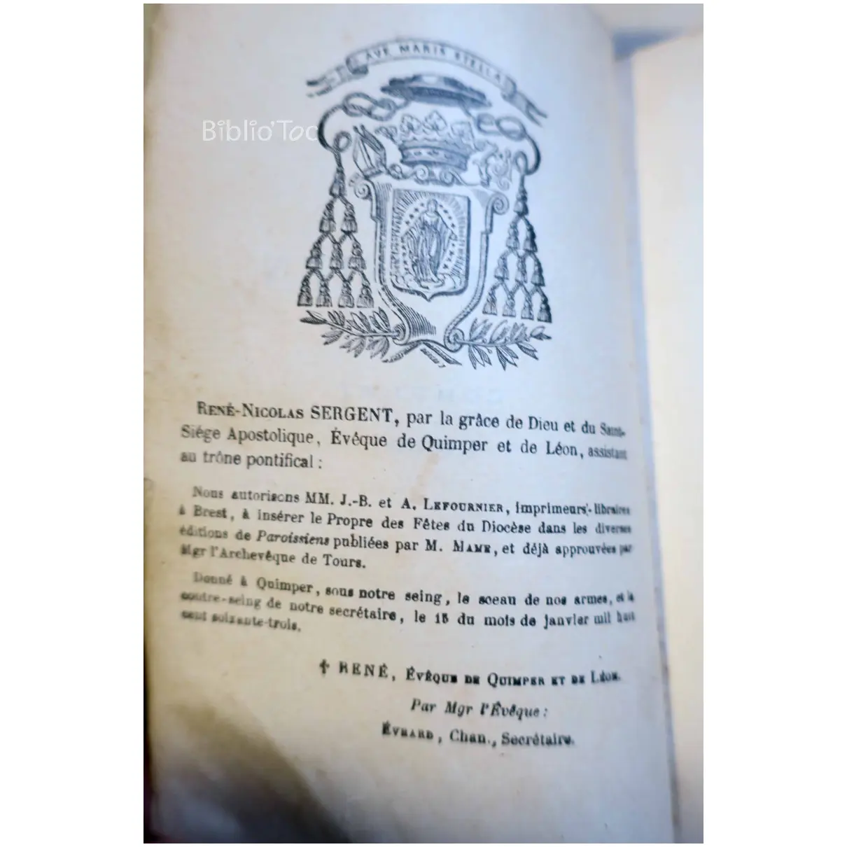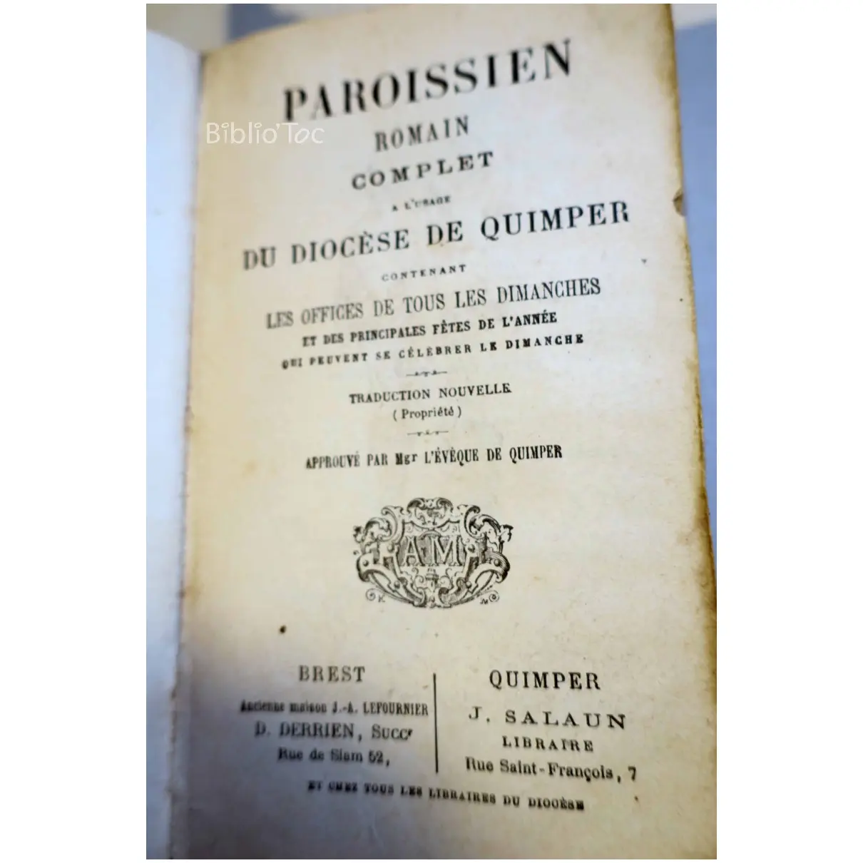 Paroissien romain complet Quimper – Détails: Couverture très abîmée Intérieur jauni quelques taches
