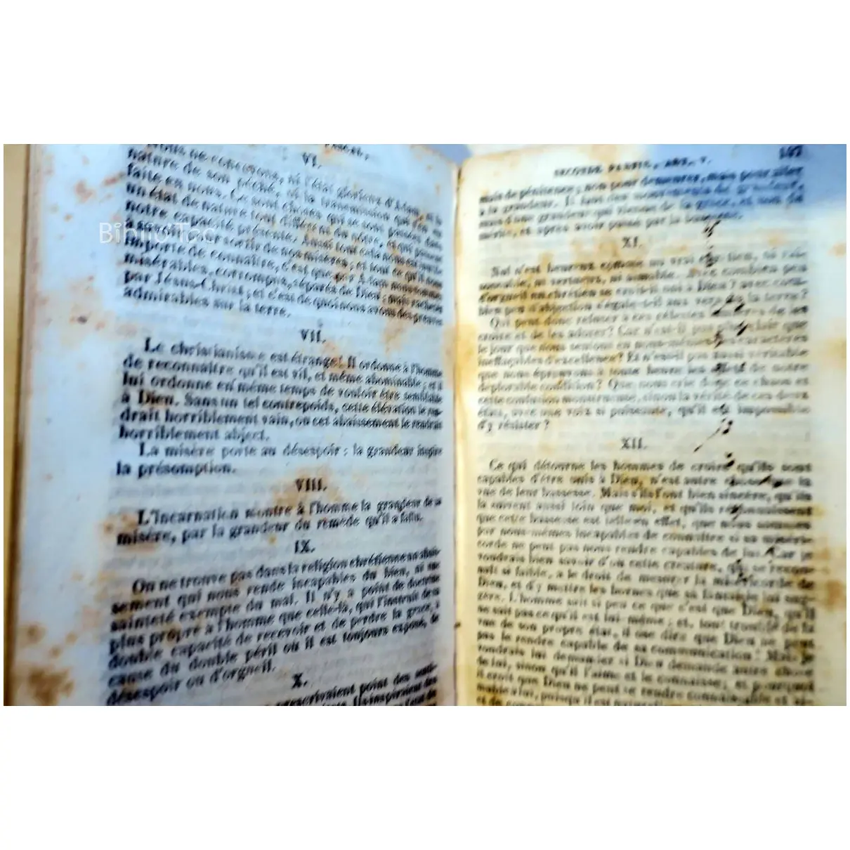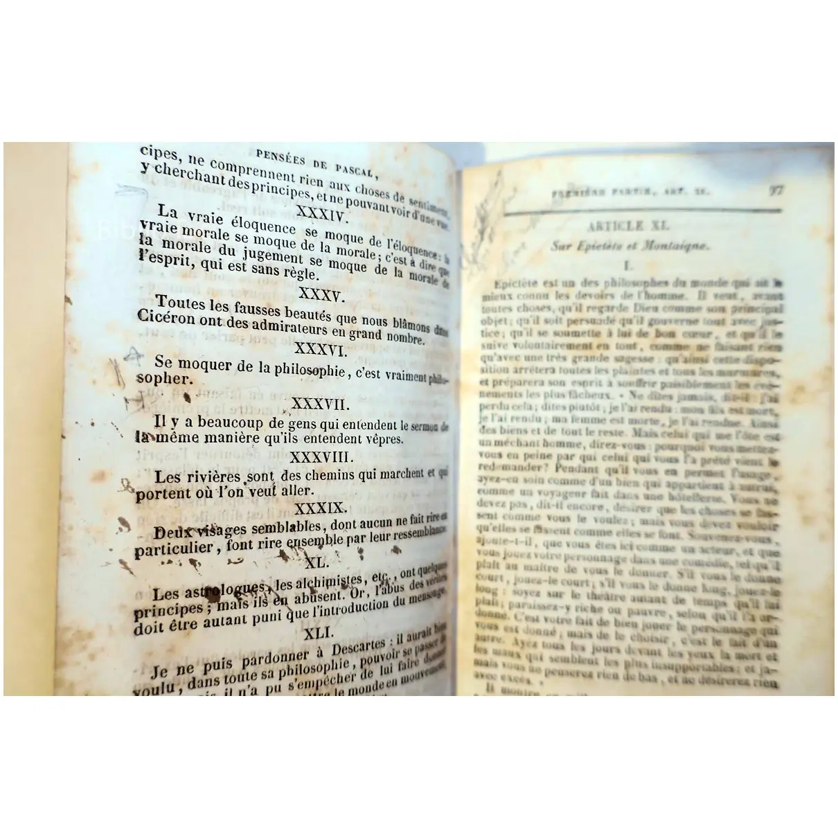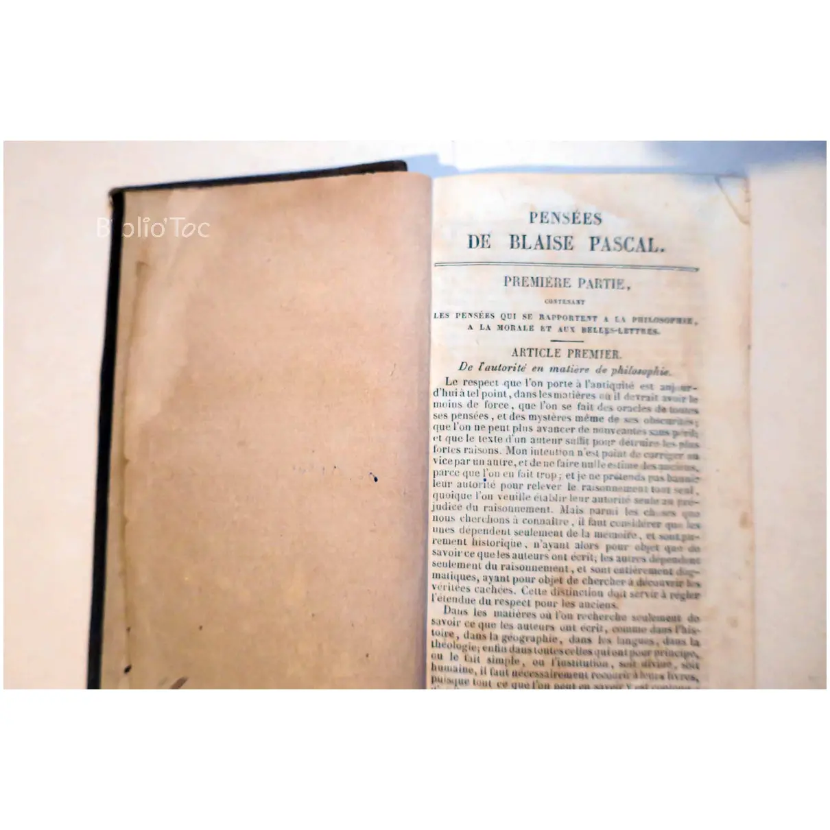 Pensées de Blaise Pascal – Détails: Couverture usée Nombreuses taches Daté d’après une inscription manuscrite