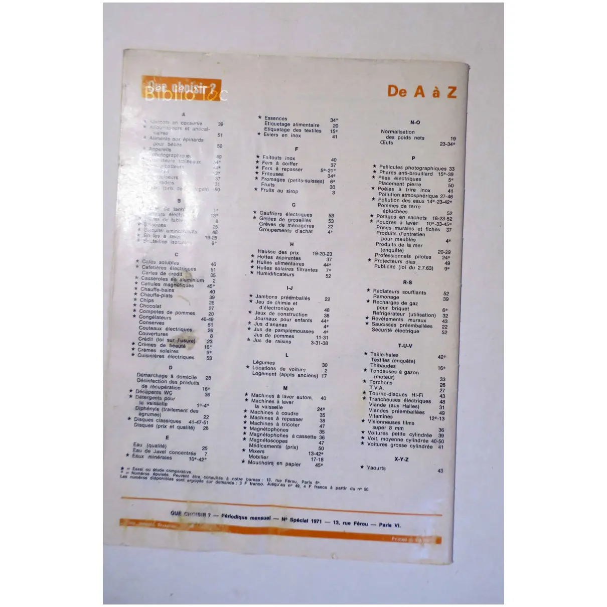 Que choisir numéro spécial… 1971