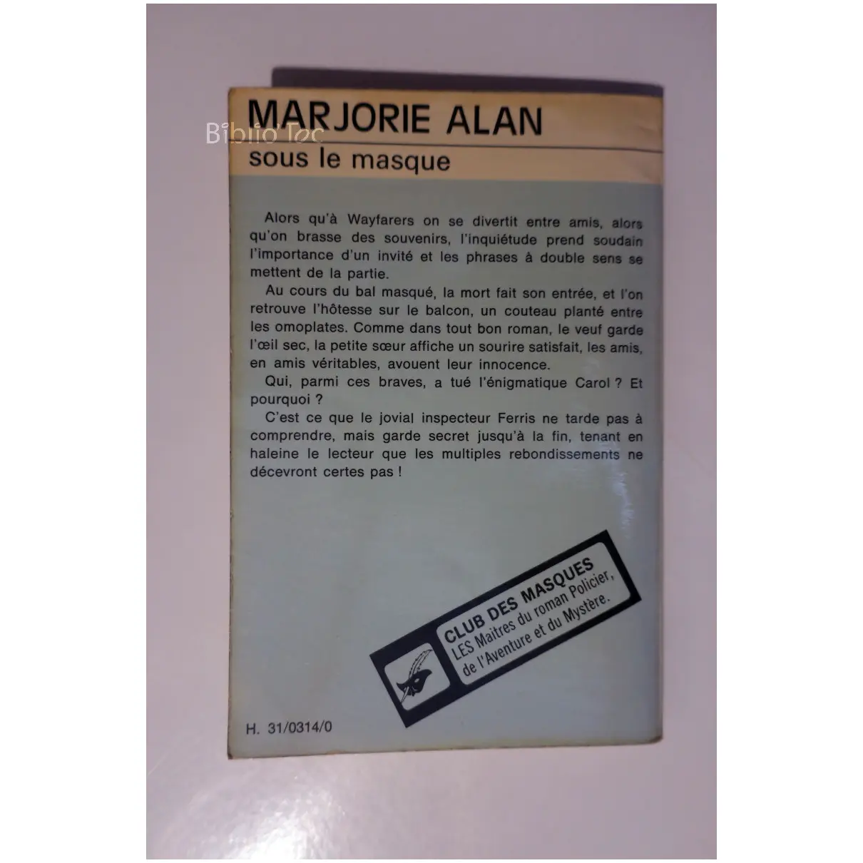 Sous le masque – Détails: Coins frottés Intérieur jauni mais correct Auteur(s): Marjorie Alan