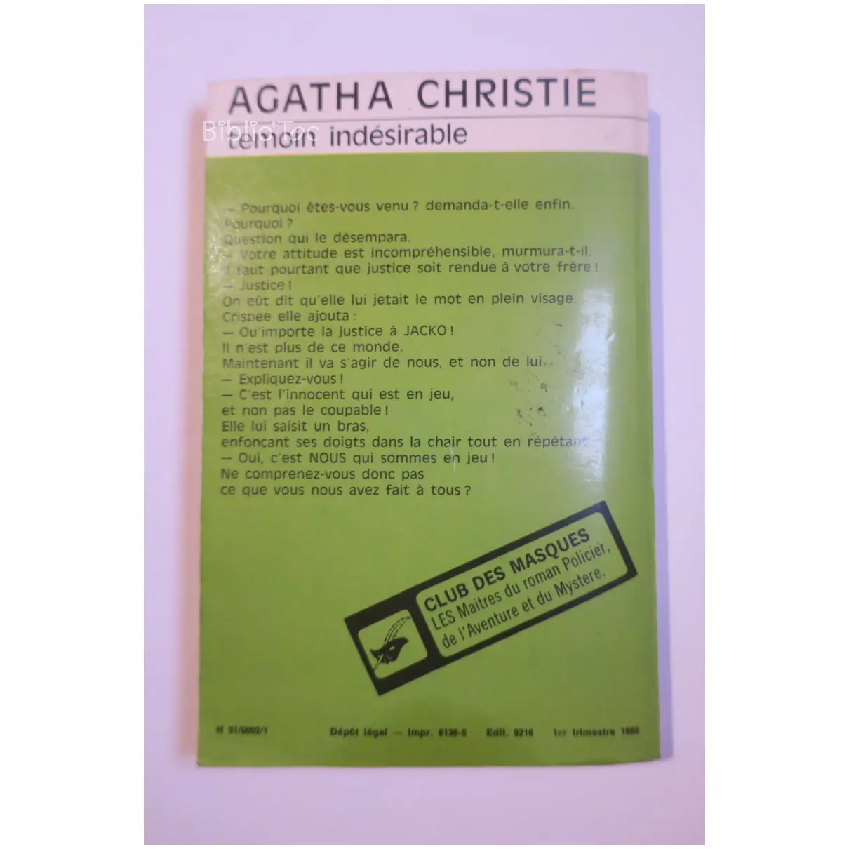 Témoin indésirable…Christie Le Masque 1980