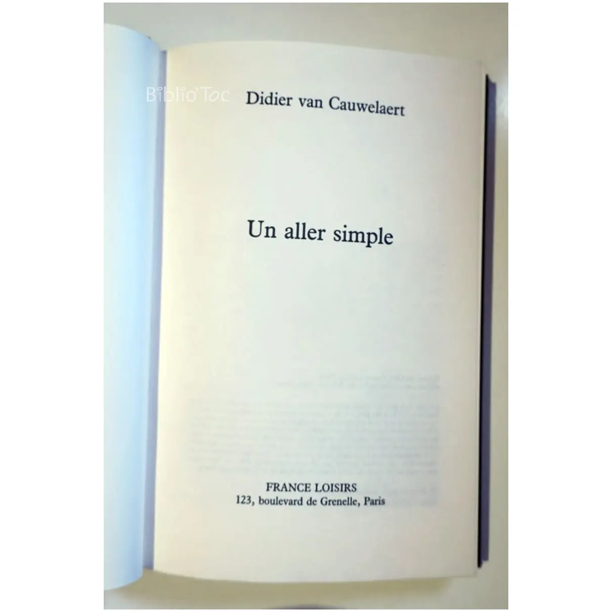 Un aller simple…Van Cauwelaert France Loisirs 1995