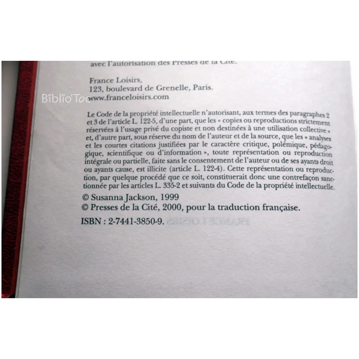 Livre – État: État satisfaisant – Auteur: Jackson – Édité par: France Loisirs – Année d’édition: 2000