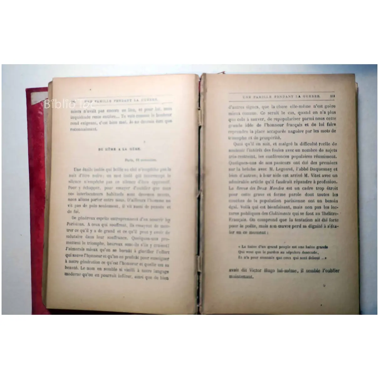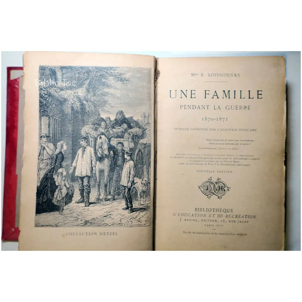Une Famille pendant la Guerre 1870-1871 – Détails: Couverture salie et usée Reliure fragile Dorure de la tranche bien conservée Intérieur correct Auteur(s): Lucie Boissonnas – Remarques: Année d’édition estimée